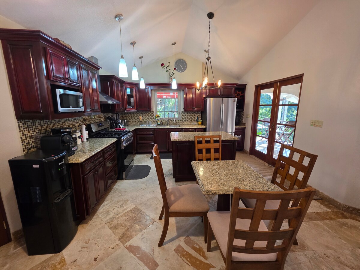 Розкішна вілла Tranquility Прокидайтеся під спів птахів у джунглях, відпочивайте на балконі з кавою, охолоджуйтеся в басейні в полуденну спеку та насолоджуйтеся вечерею на відкритій кухні під зірками, слухаючи рев мавп. Ця приватна вілла в джунглях знаходиться за 5 хвилин ходьби від центру Сан-Ігнасіо. На віллі є 4BR/4BA Повністю кондиціоноване повітря Пральна й сушильна машини Барбекю на відкритому повітрі Басейн (від 3 до 6 футів) Високошвидкісний Wi-Fi Повністю обладнана кухня Приватна парковка Близько до місць проведення екскурсій Помешкання та враження!