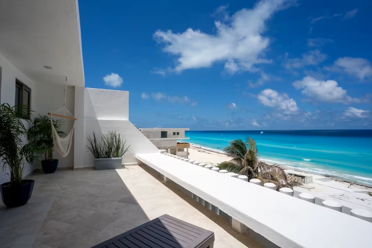 З кожної кімнати цього пентхаусу відкривається унікальний краєвид на найпопулярніший пляж Канкуна! Ви ніколи не забудете моменти, які проводите на обгортці навколо балкона, дивлячись в океан і насолоджуючись вітерцем! Прокиньтеся в оточенні бірюзової води, білого піску та приголомшливого краєвиду на пляж на 20 миль! Насолоджуйтеся кавою або коктейлем на вершині півострова Юкатан, де час зупиняється. Вийдіть із вестибюля на пісок або пройдіть від 1 хвилини до 20+ ресторанів, барів і нічних клубів!