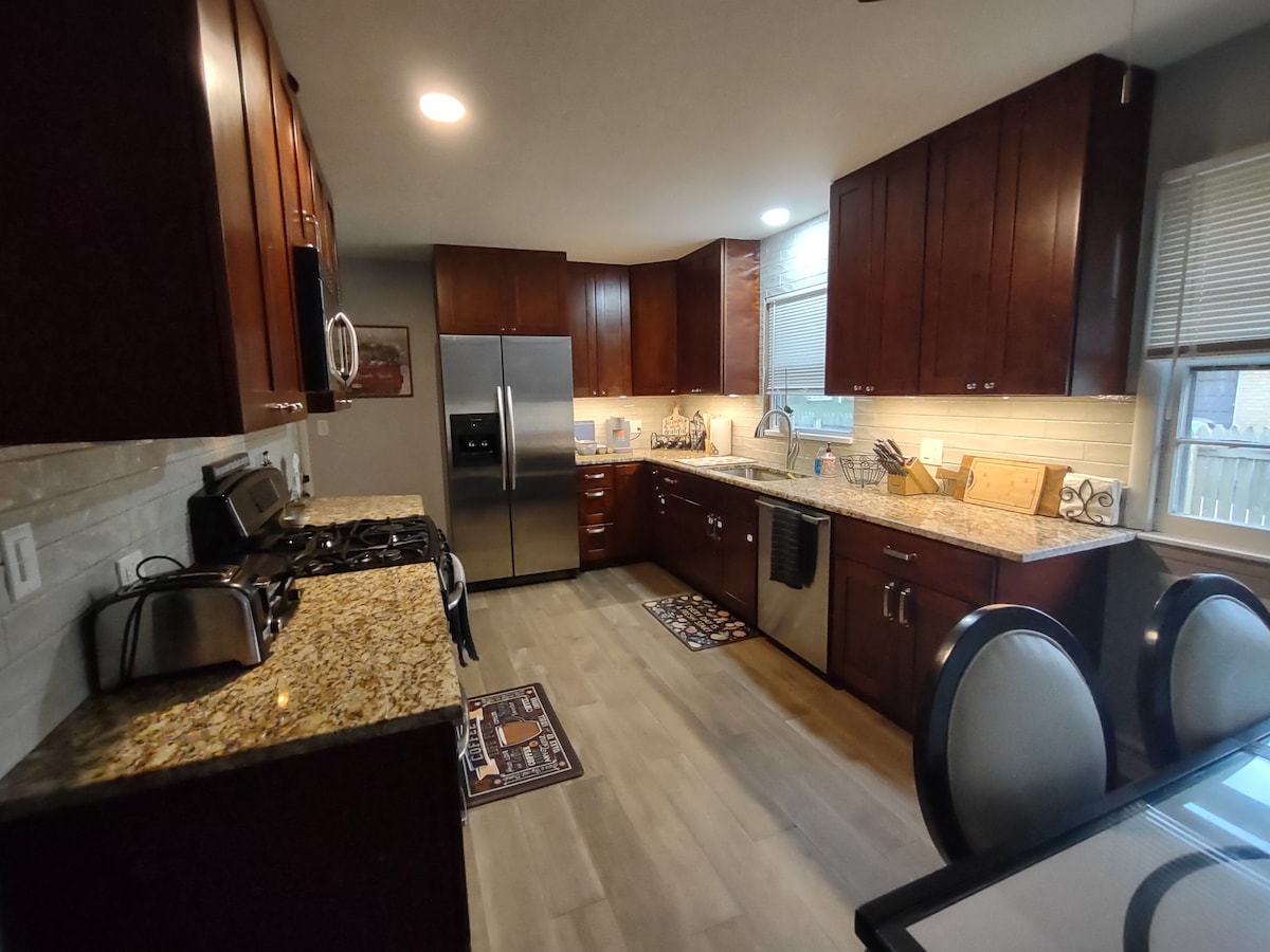 1200 sq ft ranch style house w 2 bedrooms, 1 bath. Main bedroom has 1 queen size bed, 2nd bedroom has twin size bunk beds w twin size rollaway bed which enables a total of 5 guests. Appliances available for use are stackable washer/dryer, fridge, stove, over the range microwave, and dishwasher. Newer propane grill is available for use. *bunk bed will be difficult for older individuals due to lower bunk being low.