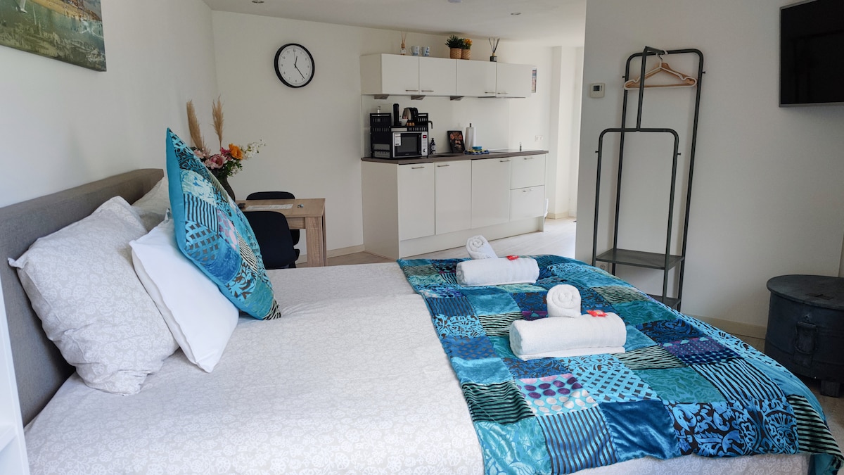 Luxury upgrade 2022! Cosi private boutique room with bedroom and kitchen island close to the sea, centre and train station. Floor heating system and kitchen with induction plate, refridgerator and combi microwave. Bathroom with walk in rain shower. Only 500 meters from the sea and 50 meters to Restaurant and shop. A private patio is available for outside breakfast/diner. The garden can be closed off and the Jacuzzi (39°C) and Sauna can be booked for a part of the day.