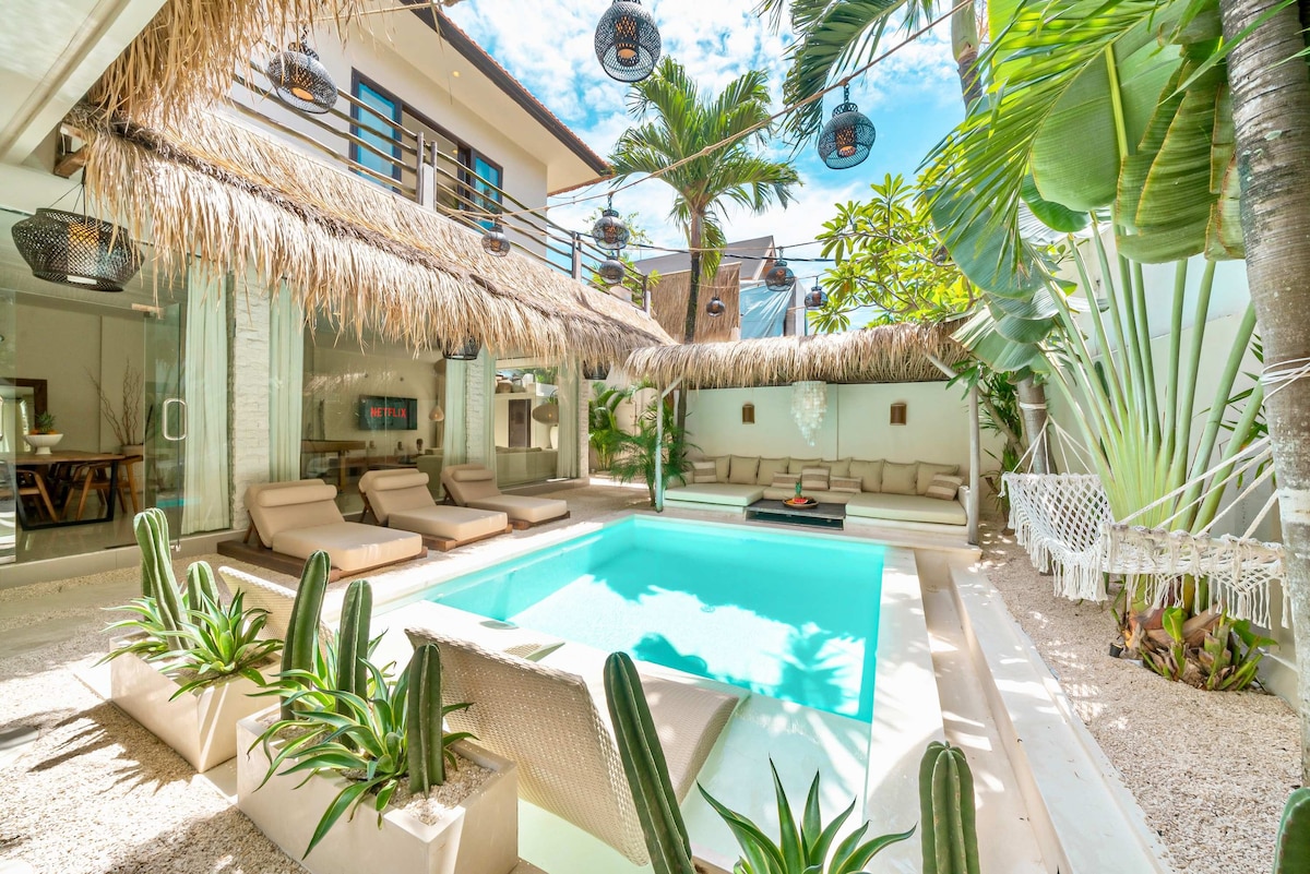 This stunning 3BR/3BA private villa blends tropical charm with modern comfort, just 5 minutes from the beach! Perfect for families or groups, enjoy sun-drenched open living spaces, a fully equipped kitchen, and luxurious en-suite bedrooms designed for total relaxation. Tucked in one of Bali’s most vibrant neighborhoods, you’re moments away from Finns Beach Club, Atlas, top cafés, yoga studios, boutiques, and nightlife.