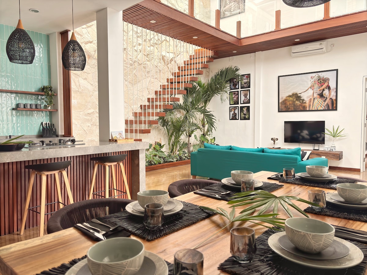 Відкрийте для себе розкішний відпочинок на Балі, де наше помешкання продумано для тих, хто шукає найкращого комфорту та стилю. Насолоджуйтеся ексклюзивним доступом до вечері на даху, розслабтеся в нашому розкішному спа-салоні з басейном і залишайтеся активним у нашому повністю обладнаному фітнес-центрі. Незалежно від того, чи ви подорожуєте для відпочинку, чи у справах, наші преміальні зручності та спокійна обстановка обіцяють незабутні та приємні враження від перебування. Забронюйте зараз, щоб насолодитися відпочинком на Балі!