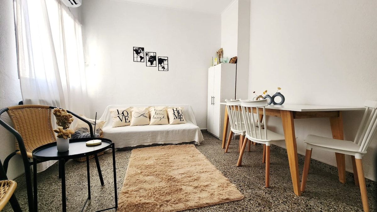 Насолоджуйтеся перебуванням у цій комфортабельній і світлій квартирі, повністю мебльованій і обладнаній, щоб ви почувалися як вдома. 🛏️ Планування ТА зручності: • Двоспальне ліжко + односпальне ліжко • Повна ванна кімната з ванною 🍽️ Обладнана кухня: • Холодильник із морозильною камерою • Мікрохвильова піч • Столовий посуд, каструлі та інший посуд • Стіл і стільці 📺 Зручності: • Wi-Fi. • Кабельне телебачення. • Електроенергія, газ • Кондиціонер • Опалення радіаторами 🚫 Увага! Немає пральної машини