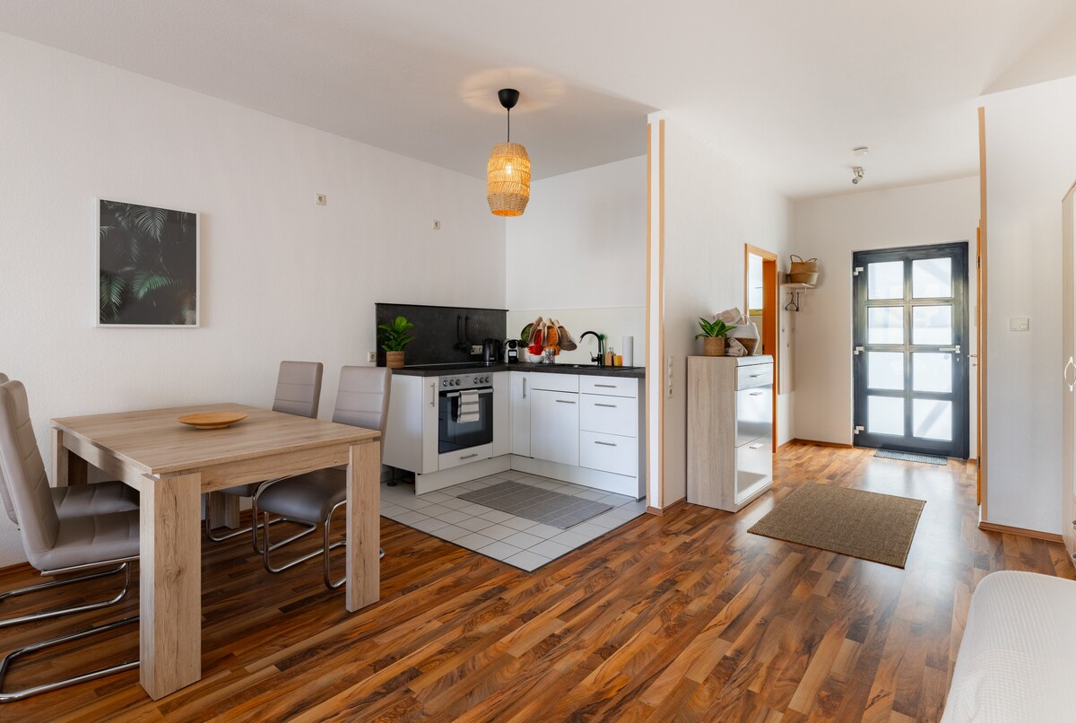 Насолоджуйтеся спокоєм на краю лісу та центральним розташуванням посеред Центральної Німеччини. Наш нещодавно відремонтований заміський будинок пропонує чотири затишні спальні, багато місця для прибуття та приватний сад із зоною відпочинку та каміном. Ідеально підходить для сімей, пар і друзів, які хочуть поєднати природу, відпочинок та екскурсії до Лейпцига, Магдебурга, Дессау, Галле або Гарца. Домашні тварини дозволені, куріння дозволено на вулиці.