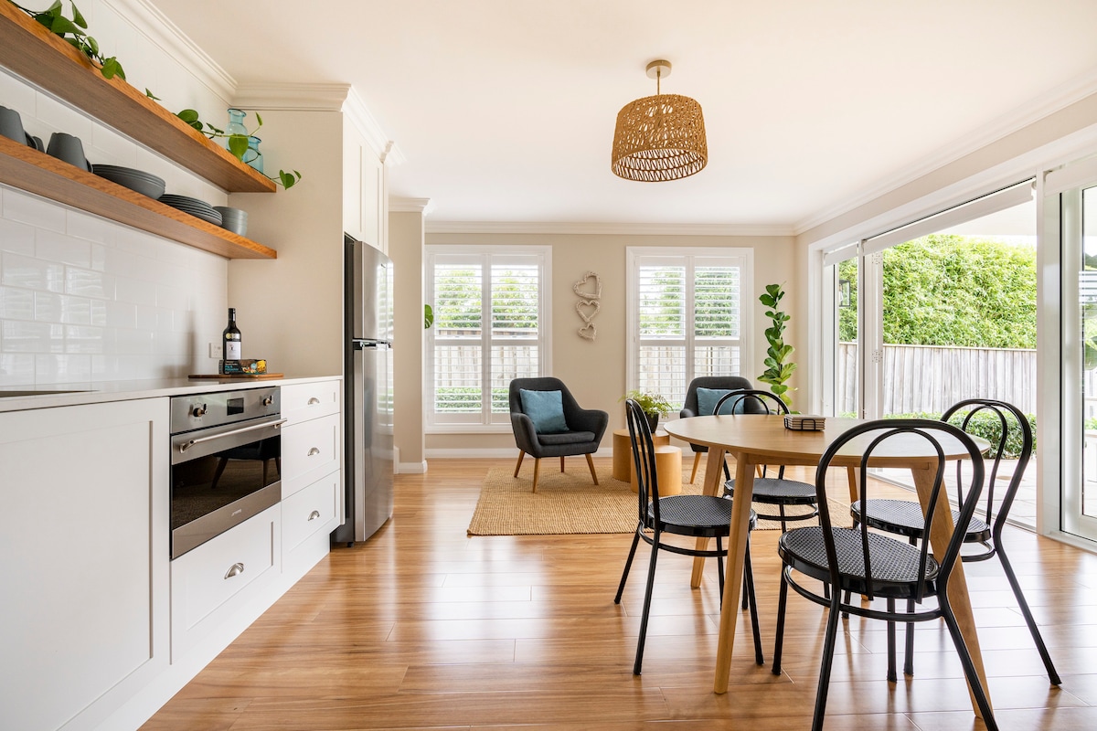 Відпочиньте в нашому заміському будинку з 2 спальнями, розташованому на 3 акрах відзначених нагородами садів, всього за 1 км від пляжу Севен-Майл-Біч і 6 км від села Беррі-Віллідж. Ідеально підходить для пар або сімей, з приголомшливими краєвидами на північ, затишними інтер’єрами та продуманими штрихами. Взимку можна розслабитися біля багаття, а влітку насолоджуватися прохолодними днями, відвідувати виноробні, гуляти та відпочивати на пляжах.