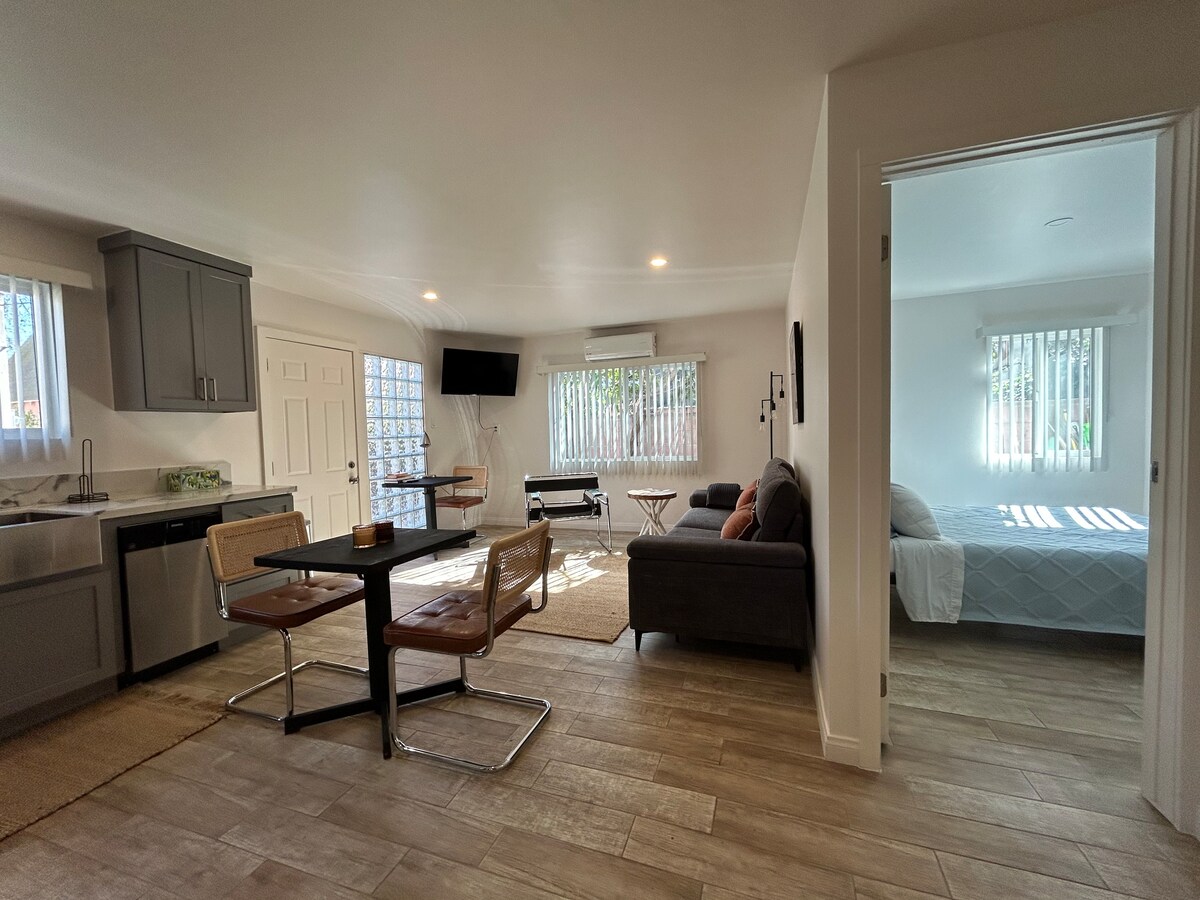 Нещодавно відремонтований, красивий, комфортабельний і чистий гостьовий будинок в ідеальному районі Західного Голлівуду. Ідеально підходить для пари або невеликої сім 'ї. У цьому світлому та просторому котеджі з однією спальнею є ліжко розміру «king size», диван-ліжко розміру «queen size» у вітальні, повністю обладнана кухня, сучасна ванна кімната з великим душем, окремий внутрішній дворик та пральня. Прогулюйтеся до найкращих ресторанів і чудових магазинів, а також до центральних пам’яток Лос-Анджелеса.