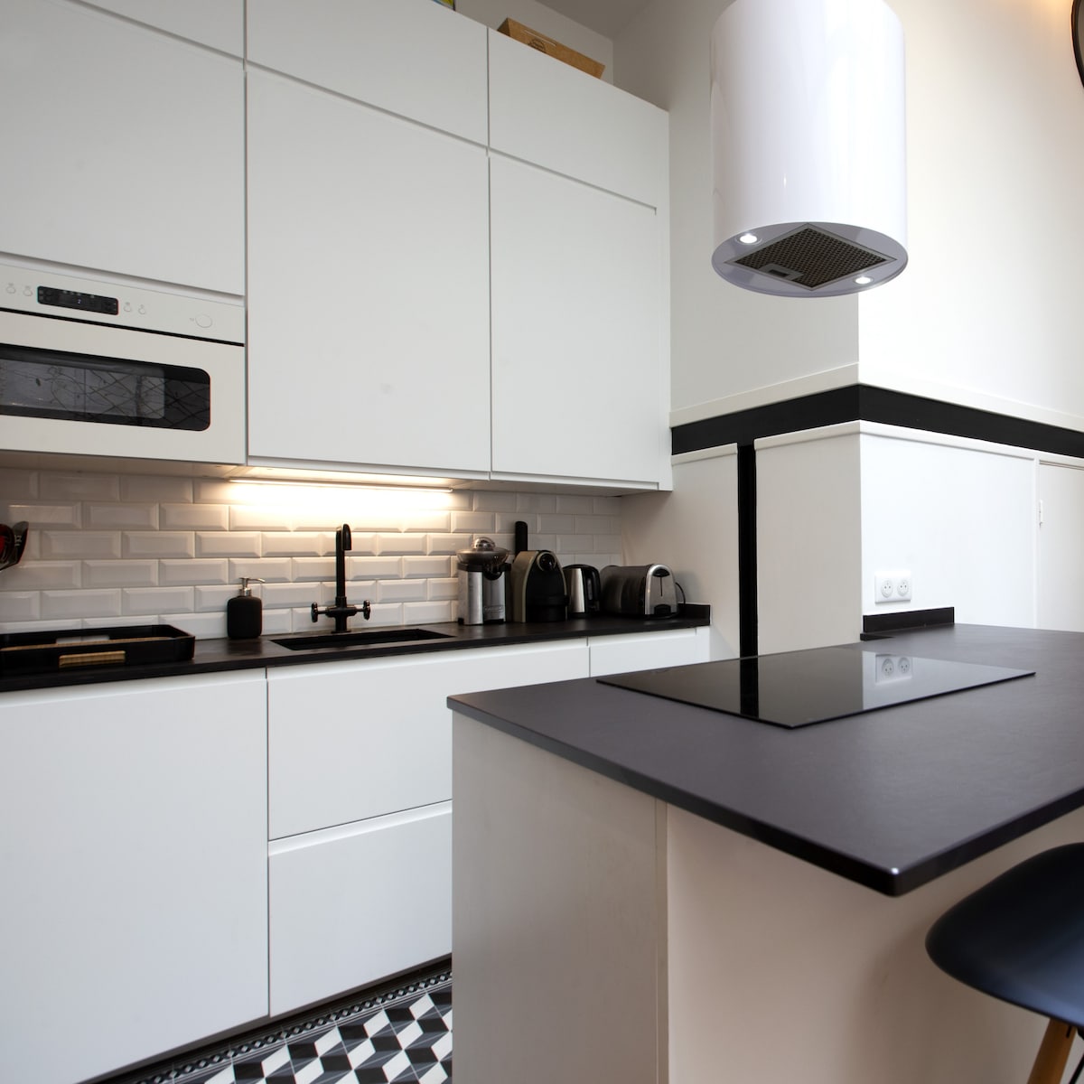 «Comptoir de Roland» - це унікальна квартира в центрі Ле-Аль. Роланд - колишній торговець 50-х років, і ми відтворили його знамениту стійку! Декор Chin, натхненний своїми епосами в Греції та Східному, повністю обладнана кухня, екстер 'єр площею 10 м2 з зоною відпочинку, 1 спальня, 2 душові кімнати, Wi-Fi, телевізор... «Comptoir de Roland» - це ІДЕАЛЬНЕ місце, щоб відкрити для себе Біарриц і жити в гармонії з ринком HALLES, розташованим прямо навпроти.