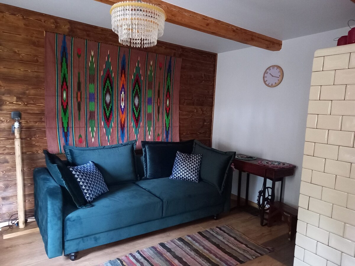 Побалуйте себе відпочинком і відпочинком в атмосферному місці. Хочете провести час зі своєю сім 'єю? Організуєте відпочинок із друзями? Або, можливо, відійдіть від усього цього і поїдьте кудись лише ми вдвох ... Це місце буде ідеальним! Тут затишна вітальня з міні-кухнею, спальня + мезонін, ванна кімната та сауна. На вулиці є альтанка та гриль для барбекю. Біля трав 'яного куточка.