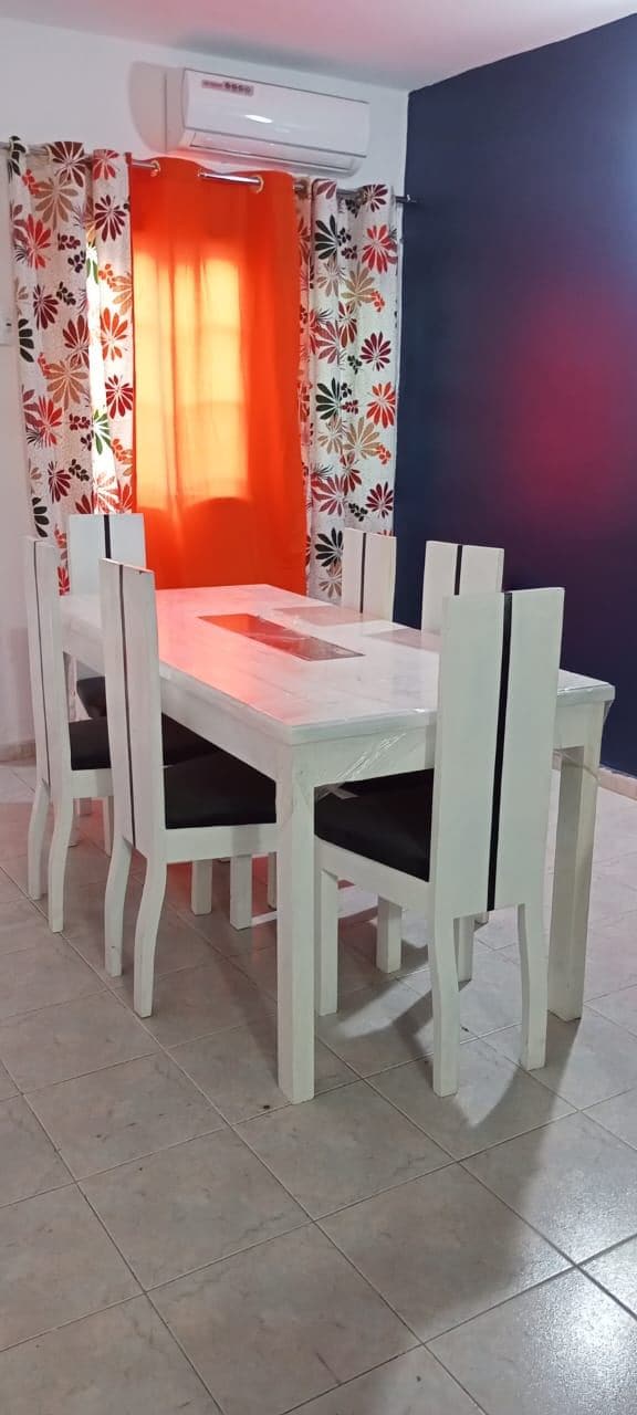 Ласкаво просимо до Maison Matéka, стильного та повністю обладнаного помешкання, призначеного для комфорту та спокою під час кожного перебування, розташованого всього в 5 хвилинах від аеропорту Абіджана. Насолодіться стратегічним розташуванням, близькістю до пляжів, бассаму, шикарних районів, таких як Маркорі та Зона 4. Незалежно від того, чи ви зупинилися тут на пересадку, у відрядженні чи на відпочинку, тут ви знайдете тепле, акуратне та привітне помешкання для максимального комфорту. Maison Matéka – там, де ви почуватиметеся як удома.