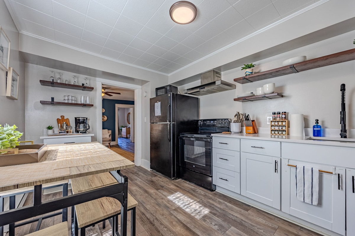 Ви зможете миттєво розслабитися в цьому стильному помешканні, зручному для домашніх тварин, лише за 8 хвилин від дороги I-70, вихід 42. Під навісом дерев знаходяться красиво облаштований двір із терасами та двома вогнищами. Насолоджуйтеся добре підтримуваною кухнею з органічною кавою справедливої торгівлі. Розслабтеся з 2 телевізорами Roku, іграми та головоломками, купайтеся з солями та турецькими рушниками. Для любителів активного відпочинку розкажіть намети. Сядьте біля дров 'яної печі взимку або покладіть у гамак, коли тепло. Ласкаво просимо в The Crooked Cottage!