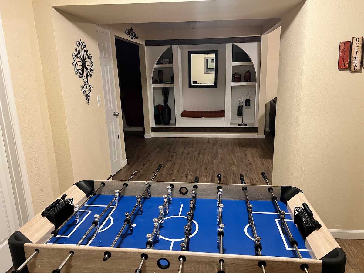 Приїжджайте всією сім 'єю до цього чудового місця з великою кількістю місця для розваг. Чотири великі спальні та ванні кімнати. Величезна ігрова кімната з пінболом El Toro, Golden Tee Golf, Dynamo Foosball та кількома сімейними настільними іграми. Інша простора кімната веде до повністю огородженого заднього двору. Величезна кухня повністю укомплектована столовим приладдям, ножами, тарілками, мисками, тостером, кавомашиною, повнорозмірною духовкою, холодильником та мікрохвильовою піччю. У пральні також є ще один холодильник.