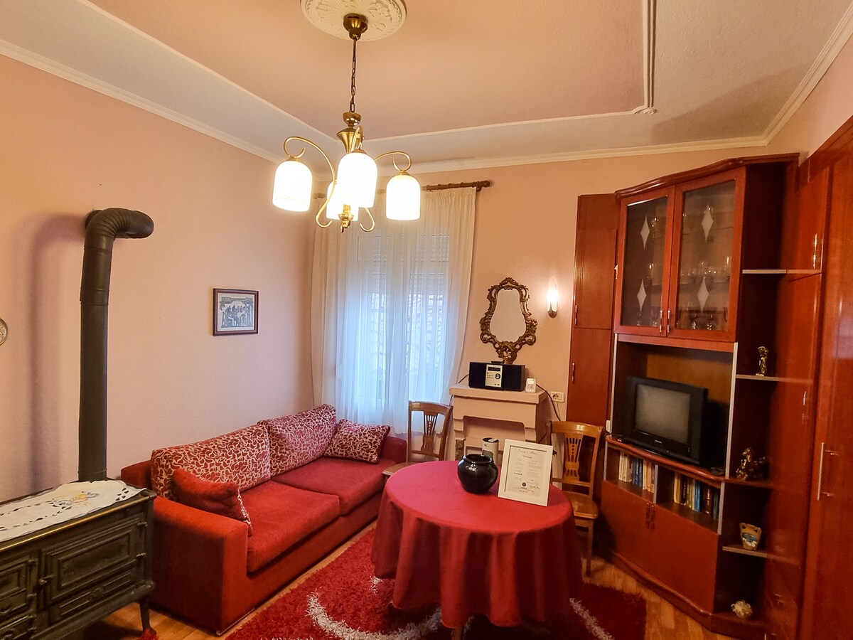 Розслабтеся в цьому унікальному і спокійному помешканні. Красива квартира на 2-му поверсі з дивовижним видом з балкона, поруч із відомою фабрикою/рестораном birra Korca та в пішій доступності до старого міста та місцевих магазинів. Ідеальне розташування для прогулянок до гір, спокійно та тихо від дорожнього руху та шуму міста. Нова квартира має все необхідне для відпочинку.