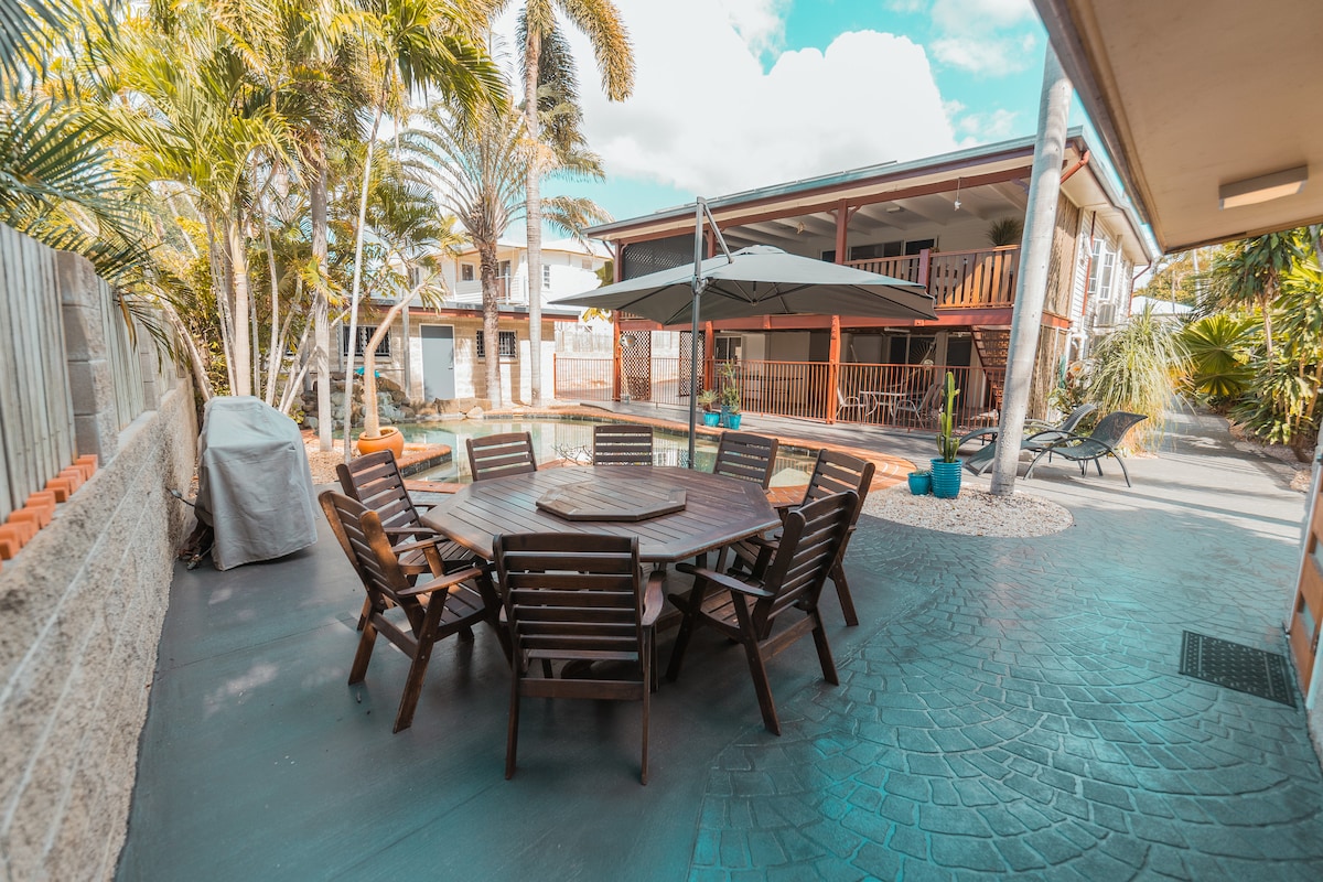 With a pool and the beach at your back doorstep, what more could you want? Unlike most accommodation in this area, this is NOT a hotel complex. Owned and run by a local family, this Airbnb will make you feel at home. This 2 bedroom 1 storey apartment has been recently renovated. Walking distance to the Strand beach. March 2025 - renovated with new air-con units, whole new laundry and tinted windows for climate control and privacy.