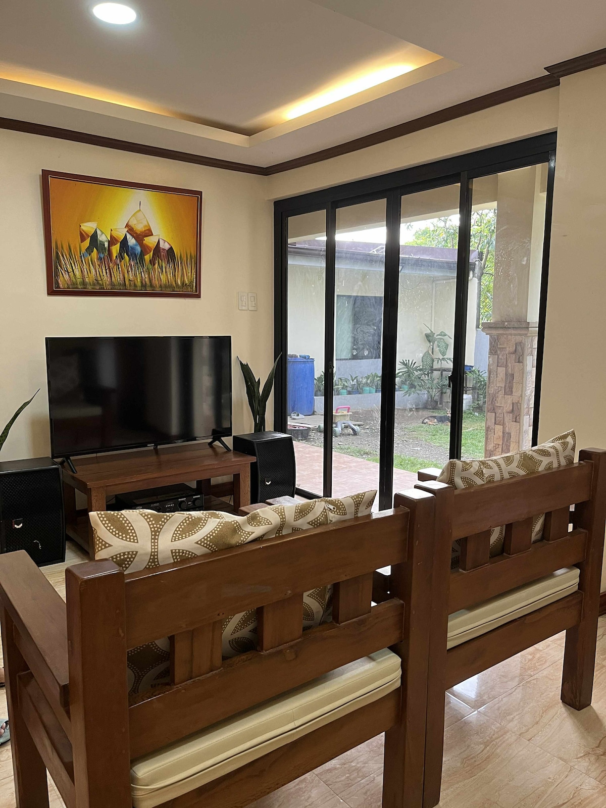 У нашому помешканні є дерев 'яні меблі для затишного відчуття, з невеликим садом і скляним акваріумом. Нічне світло приваблюватиме ваші очі, оскільки воно приносить більш детальну енергію від кольорів меблів, а диско-світло освітлює все, щоб прикрасити ніч. Відпочиньте від прохолодного вітру Silang Cavite і насолоджуйтеся їздою на велосипеді або іграми за межами вілли.