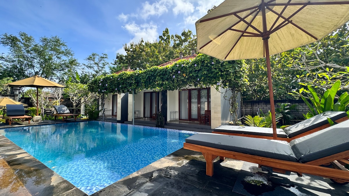 Відкрийте для себе сучасне та комфортне перебування в тихому оточенні, з просторими номерами з власними терасами та басейном. Ідеальне розташування всього за кілька хвилин від найвідоміших місць Балі – пляжів Дрімленд і Меласті та парку культури GWK. Насолоджуйтеся безкоштовним високошвидкісним Wi-Fi, цілодобовим відеоспостереженням, щоб ви могли почуватися в безпеці та комфорті. Незалежно від того, чи ви тут на відпочинок, чи на довший термін, ми будемо раді прийняти вас!
