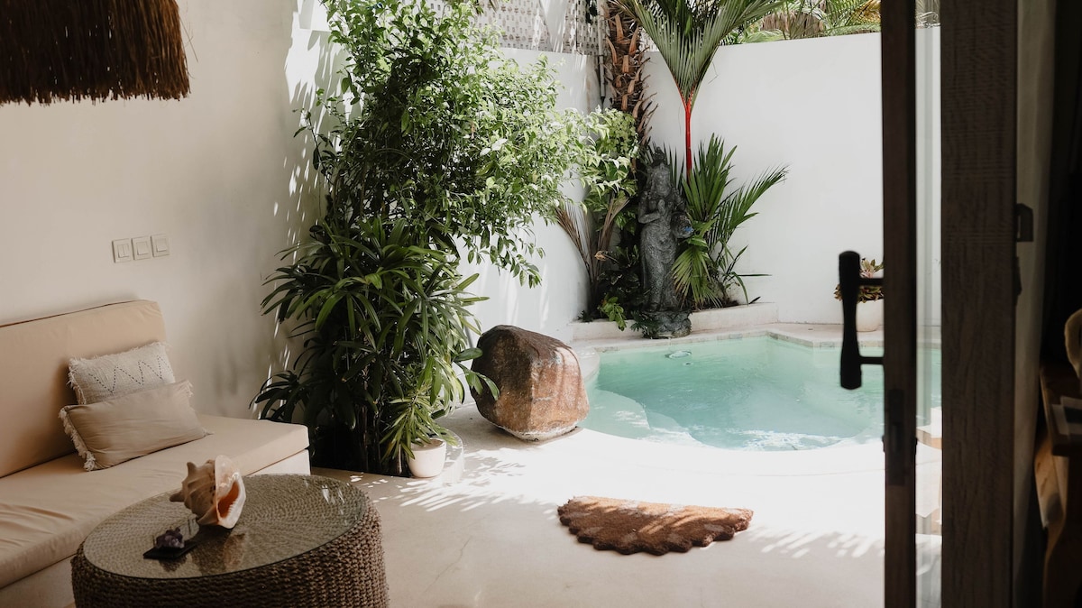 Villa Cosmo - Yolla 2009 - Ця сучасна шикарна вілла з 2 спальнями в Бінгіні – стильний відпочинок із сучасним дизайном та елегантним декором. Вітальня відкритого плану, наповнена природним освітленням, веде до приватного басейну та пишного саду, створюючи спокійний відпочинок. У кожній спальні є власна ванна кімната. Ця вілла, розташована недалеко від пляжу Бінґін, відомого своїм серфінгом і невимушеною атмосферою, ідеально підходить для тих, хто шукає сучасні, але розслаблюючі враження від Балі. Ідеально підходить для пар або невеликих груп.