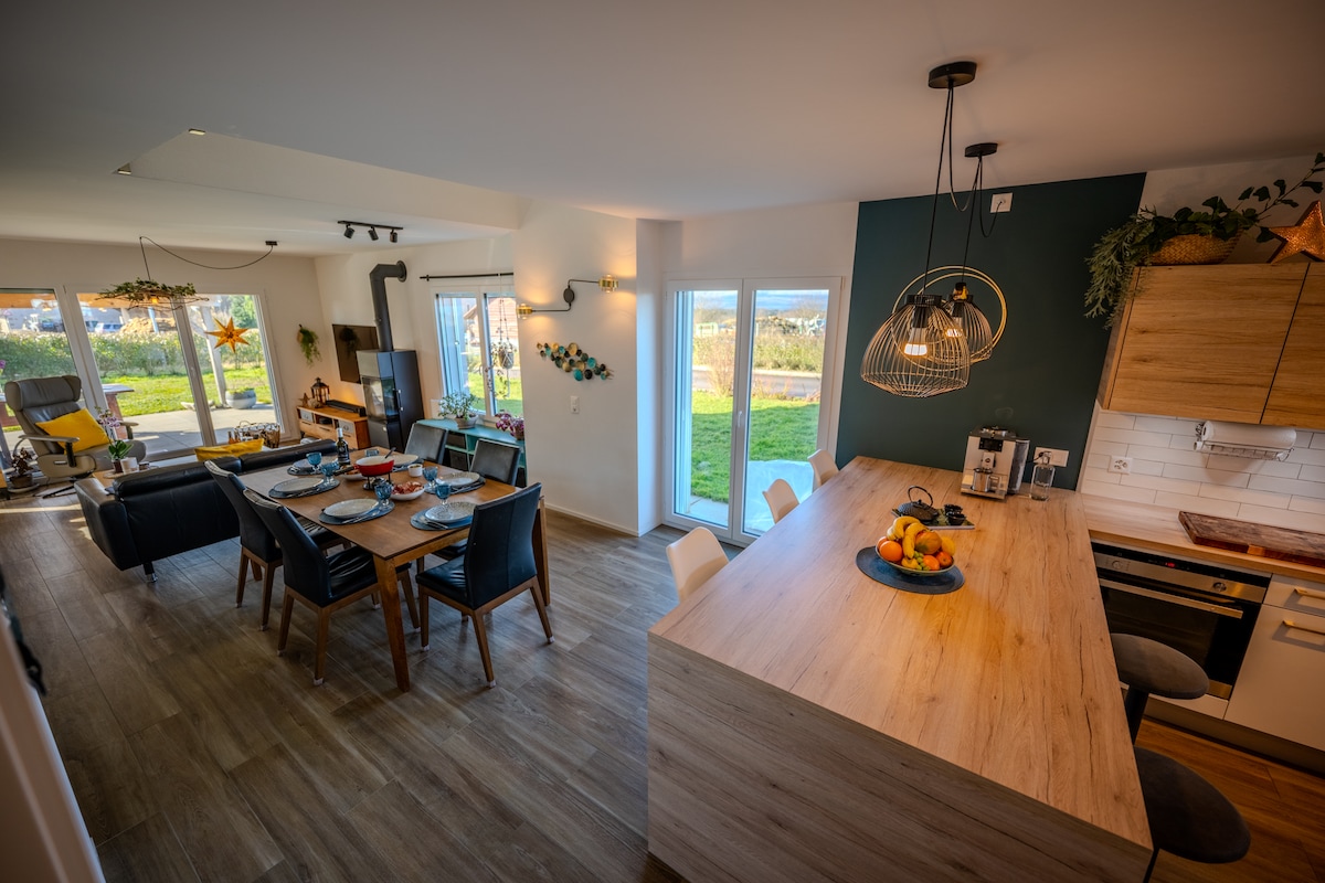 Від самого моменту входу ви відчуваєте світло. Центральний світловий колодязь проходить через усі три поверхи, створюючи рідкісне відчуття вертикального простору. Цей нещодавно побудований будинок площею 172 м² поєднує в собі сучасні лінії, великі об’єми та природний потік. Вітальня виходить на сучасну кухню, призначену для зборів. Три спальні зручно та спокійно вміщують до шести гостей. Тераса, великий сад, абсолютна тиша. Яскраве та збалансоване відпочинкове помешкання в сільській місцевості кантону Во.