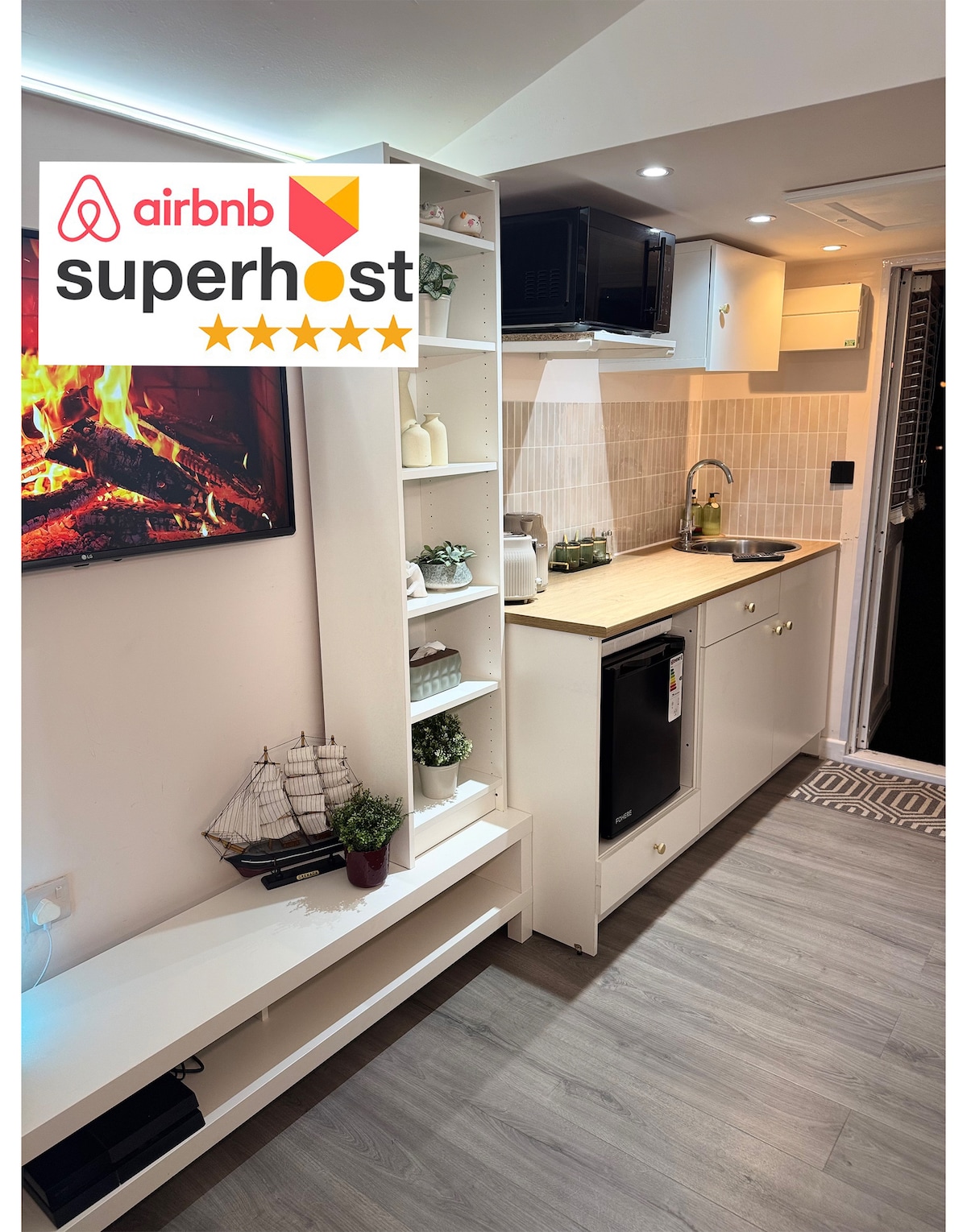 Чарівний гостьовий будинок у саду. Цей затишний автономний гостьовий будинок, розташований у тихому задньому саду, пропонує ідеальне поєднання комфорту та приватності. Це ідеальне місце для індивідуальних мандрівників або ділових гостей. Помешкання має стильний дизайн, сучасні зручності та спокійний вид на сад. Усього за декілька хвилин ходьби від місцевого магазину, кафе та транспортних сполучень ви зможете легко дістатися до мальовничої сільської місцевості. Незалежно від того, чи ви тут, щоб досліджувати, чи відпочивати, ця прихована перлина – ваш ідеальний дім далеко від дому