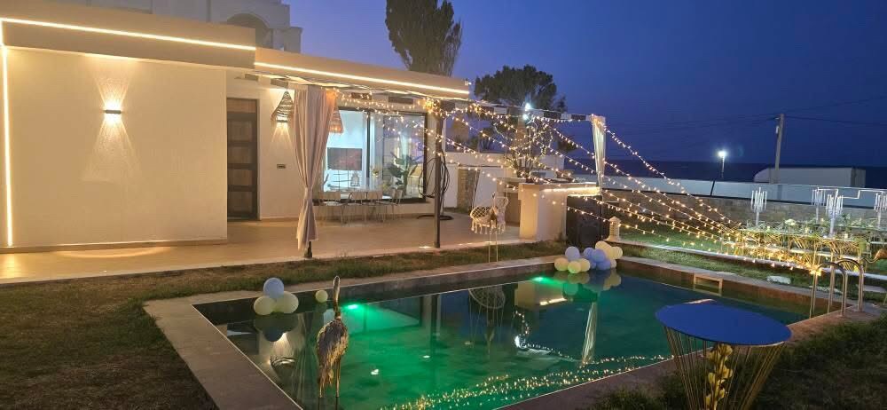 Перед розкішною віллою готелю Andalucia Beach з приватним басейном і трьома спальнями нагорі. Прямий доступ до пляжу, розташованого на відстані 100 м. Красивий вид на море з тераси. Величезний плоский екран, швидкий Wi-Fi, парковка та кондиціонер усюди. Вілла розташована за 2 км від порту та центру Бізерти. Кухня, прибирання та дитяче сидіння доступні з перевантаженням. Вілла розрахована на 6 осіб, але є можливість орендувати студію на 2-му поверсі для 3 осіб з перевантаженням.