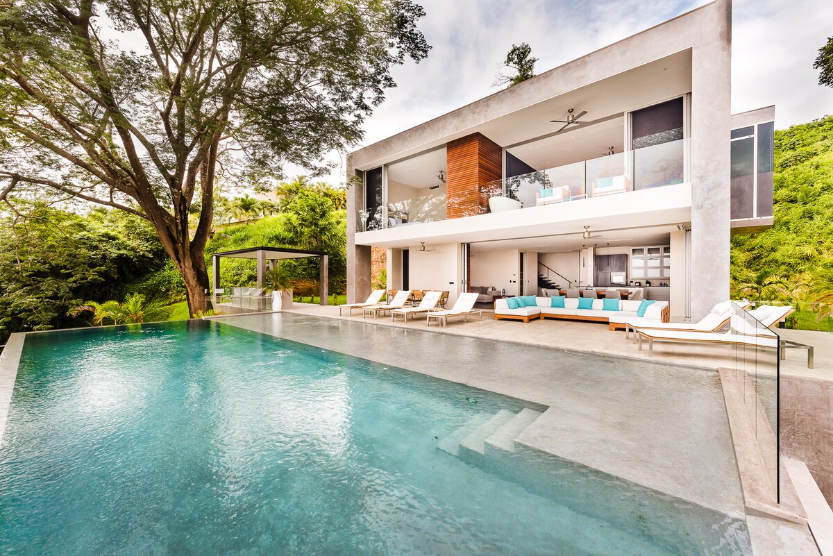 Віддалений і в джунглях! Вілла відкритого планування з 5 спальнями (3 у віллі + 2 приватні казити) розташована на схилі пагорба на Тихоокеанському узбережжі з винятковими видами. Охорона 24/7. Casitas можна перетворити на двокімнатну квартиру, з 'єднану дверима. 2 години від аеропорту LIR. Орендуйте повнопривідний позашляховик для нерівних доріг. Насолоджуйтеся серфінгом, йогою тощо! Будинок доступний як 3-кімнатний за зниженою ціною протягом певних періодів. Будь ласка, запитайте!