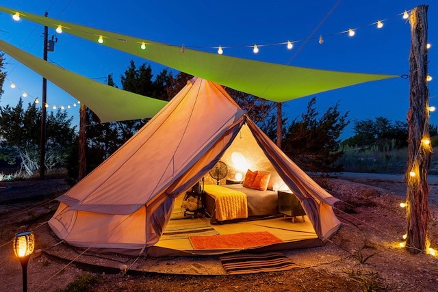 Safari Style Luxure Suite Tents Outfitted with antiques plush memory foam beddin, cognac leather sofas, solid wood antiques and hilltop hill country views. We are surrounded by wineries, distillers, brewerys, great food, shopping, historical sites and parks. Enjoy live music at one of the area historic dance halls or one of several area venues, hike, bike, float the river, enjoy all that Fredericksburg, Hye, Blanco, and Johnson City have to offer all within a short drive.