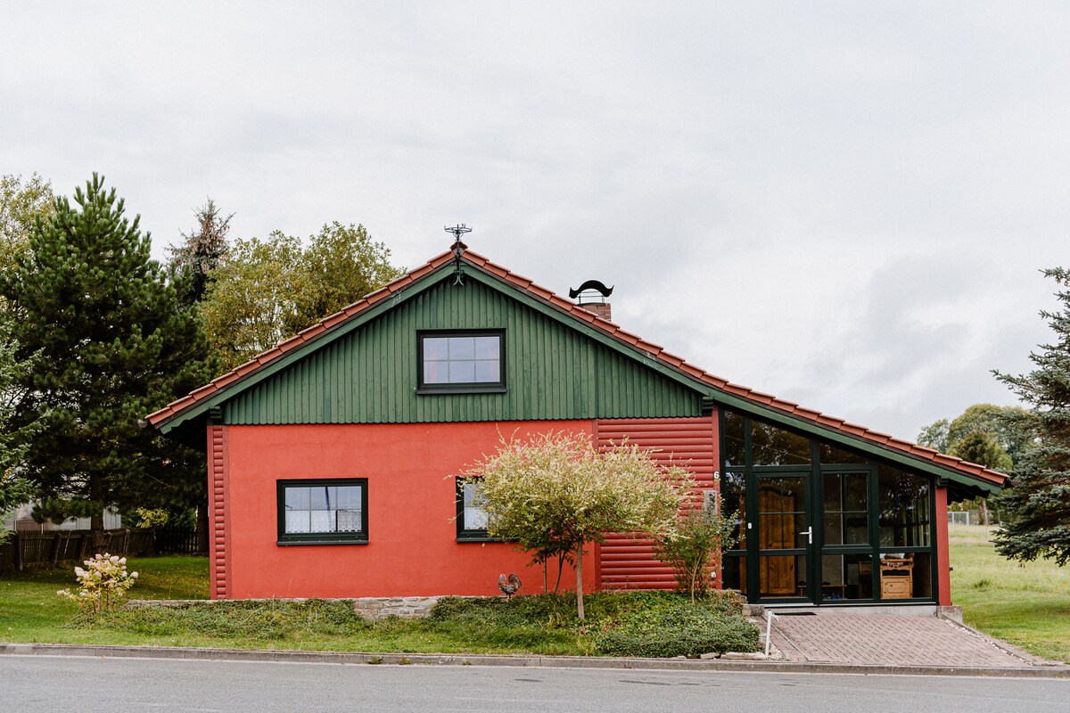 Idyllischer Bungalow in Wippra, Tor zum Harz, umgeben von Natur. Genießen Sie die großzügige Natursteinterrasse, die moderne Küche, ein gemütliches Wohnzimmer mit UHD-TV und Kamin sowie ein stilvolles Bad. Zwei Parkplätze und nach Absprache auch Fahrräder stehen bereit. Entdecken Sie die nahe Sommerrodelbahn mit Kletterwald, im Sommer das Freibad und die Talsperre mit einzigartigen Wanderpfaden. Perfekt für Erholung und Abenteuer in der Natur.Auch ein Trampolin steht den Kindern zur Verfügung.
