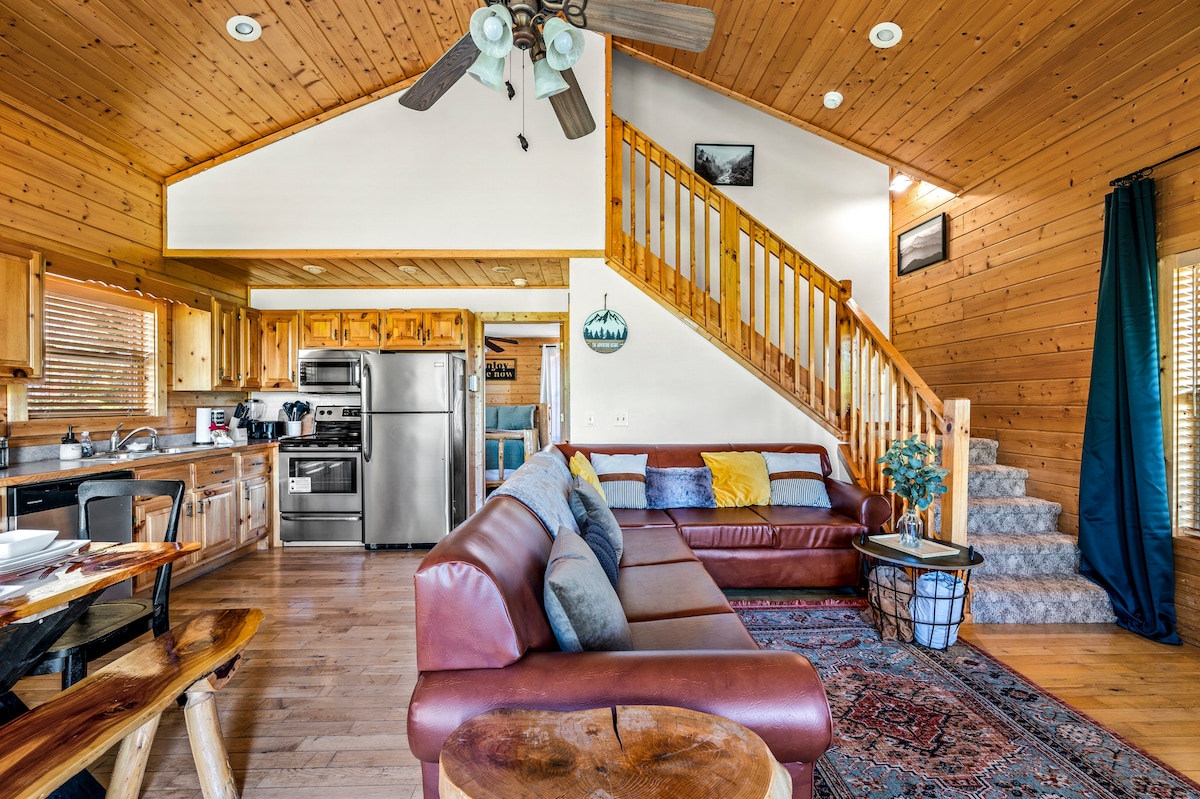 Відпочиньте від метушні в цьому унікальному та затишному зрубі. З вікон від підлоги до стелі відкривається прекрасний вид на гори. У вітальні є одна спальня з ліжком king-size (завширшки 180-220 см), спальна зона в лофті з ліжком king-size (завширшки 180-220 см) та диван queen-size (завширшки 180-220 см), що робить її ідеальною для пар, сімей або друзів. Кухня повністю обладнана і містить обідню зону на 6 місць. Також є безкоштовний Wi-Fi та 400 ігровий аркадний стіл. Зруб розташований всього в 20 хвилинах від усього, що може запропонувати Pigeon Forge