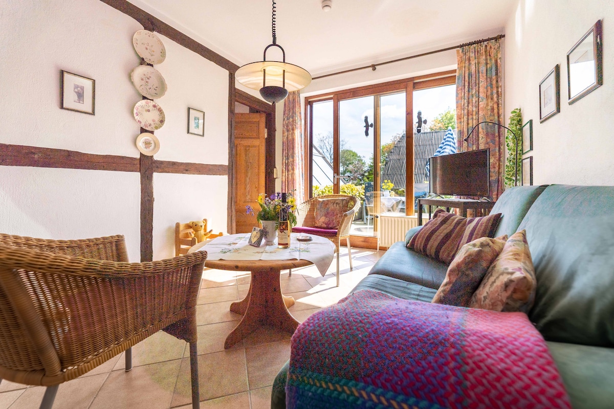 тихий маленький заміський будиночок з дуже ексклюзивним обладнанням за 1 км від Балтійського моря у Варнкенхагені, у великому квітковому фруктовому та овочевому саду . Від помешкання є доріжка до пляжу через поля та через невеликий зачарований ліс.