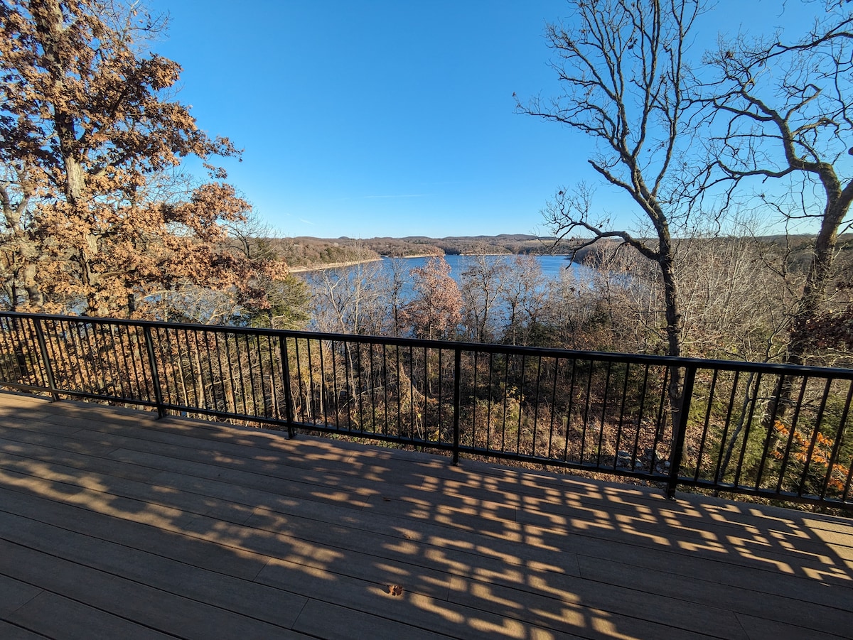 Lakefront, lake view, Sunset cottage. Enjoy the lake just a few steps away, or while sitting on your own deck. Personal hot tub with lake view on deck. This is one of our two our modern-rustic guest cottages, next to our home. Swim and fish dock, no boat slip. Cottage is 1 minute to Cricket Creek full-service marina/State Park, 10 minutes to Big Cedar Lodge/Top of the Rock, 20 minutes to Branson amenities, 15 mins to world class golfing. Some activities/venue seasonal.