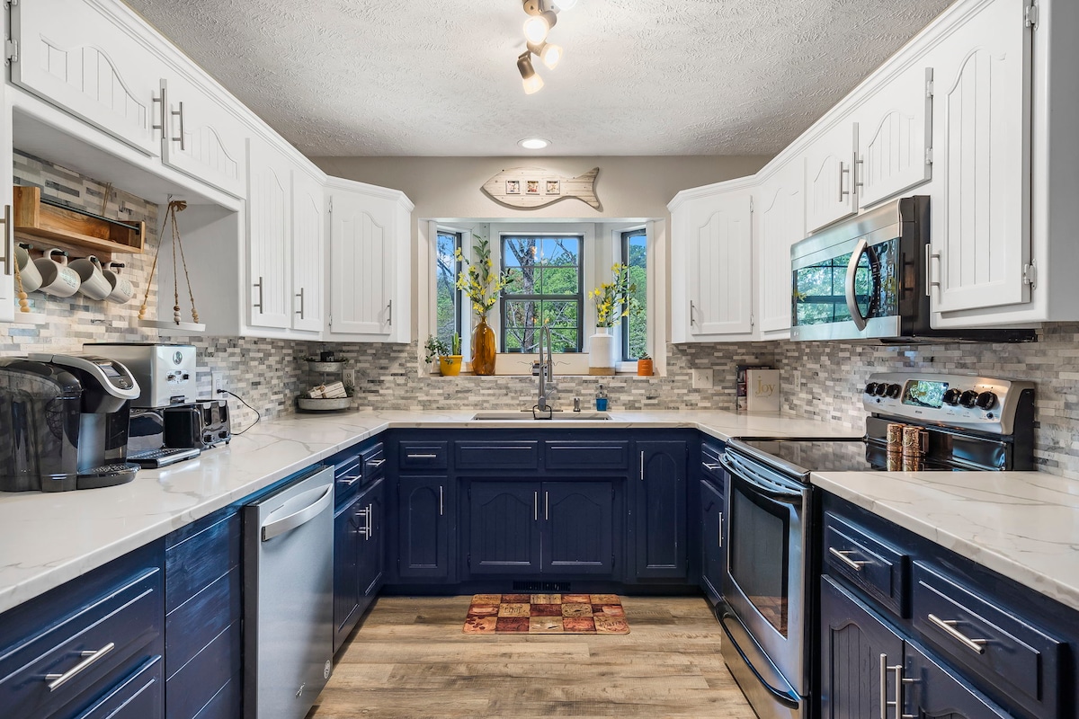 Take it easy at this unique and tranquil getaway. This one bedroom cabin overlooking a creek is minutes away from restaurants and entertainment yet secluded enough for privacy and peace. It has a full kitchen, 50 inch tv, WiFi, coffee bar, deck and much more! You now have the option as a two bedroom if you need more space check out our other listing with the original creekside log cabin! Book your stay today!