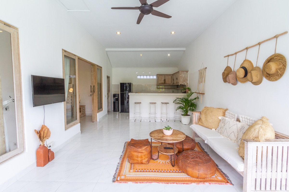 Sunset Meadow – це більше, ніж просто вілла. Це затишне місце на тихому ранчо в Кедунгу, Балі. Між океаном, пальмами та рисовими полями ви знайдете тишу, природу та рідкісне відчуття справжнього прибуття. Ваш приватний оазис із басейном, терасою, видом на коней та богемним дизайном із натуральних матеріалів створює здорову, затишну атмосферу. Зараз поруч відбувається будівництво, і це може бути шумно.
