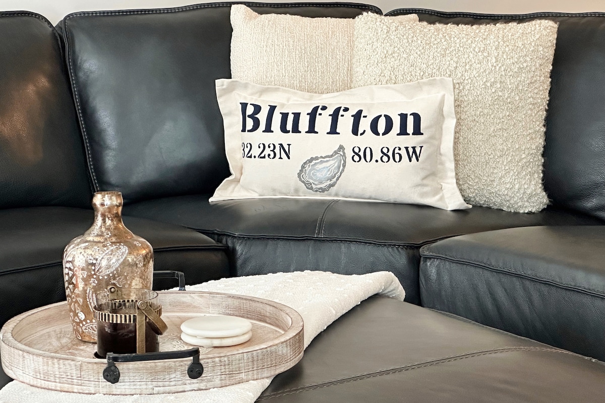 Kick back and relax in this calm, stylish space. This beautiful one bedroom apartment is conveniently located close to Old Town Bluffton, one block from Planet Fitness, less than a mile to Tanger outlets, Target, and Walmart. Approximately 10 miles to the beautiful Hilton Head beaches. Washer and dryer included as well as full kitchen, private entrance, 65” TV. Wi-Fi also included. If not available you may also want to check out our unit next-door https://www.airbnb.com/h/bestofbluffton