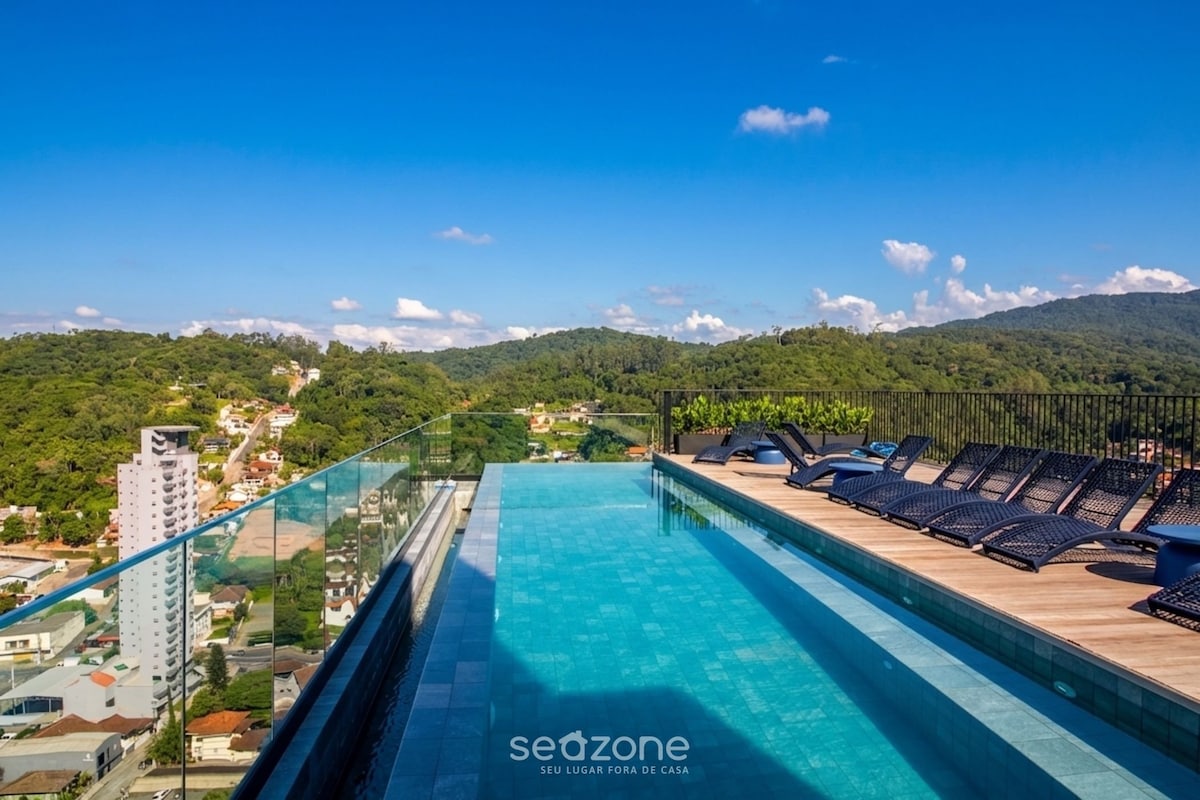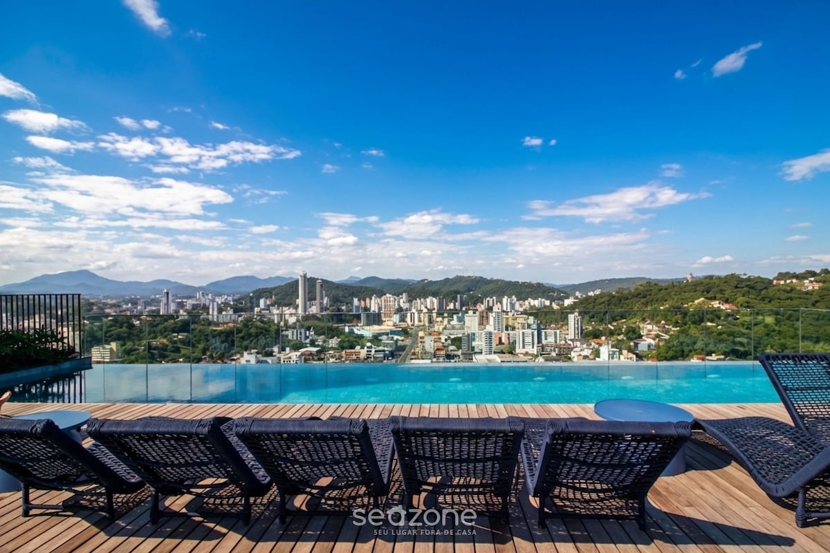 У UP ви знайдете висококласні компактні лофти. Багато скла і багато світла, на 100% мебльовані. Чудово підходить для пар і людей, які подорожують наодинці для відпочинку/роботи. Привілейоване розташування поблизу FURB, пекарні, ресторанів, ринку та в 5 хвилинах від НІМЕЦЬКОГО СЕЛИЩА - Басейн на даху з нескінченним краєм - Фітнес-простір - Коворкінг-лаунж - Паб - Зона барбекю ззаду Mercadinho Окрім пральні самообслуговування, ви також можете найняти послугу прибирання * (Pay-Per-Use).