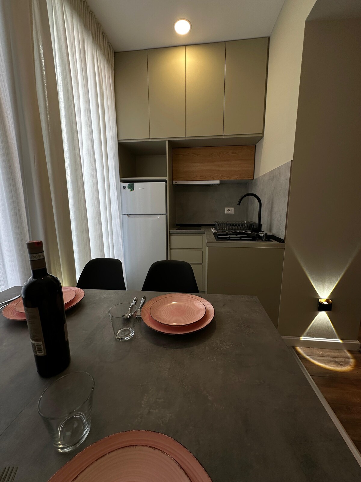 Juliette APIS – сучасні апартаменти площею 50 м² з прямим виходом до приватного внутрішнього двору, ідеально підходять для насолоди ранковою кавою або відпочинку з домашнім улюбленцем. Повністю обладнана кухня (спеції, олія, посуд), ванна кімната з пральною машиною, шампунем та предметами першої необхідності. Можна з тваринами. Розташована в тихому, безпечному районі всього за 3 хвилини від центру Корчі. Поруч із пекарнею, супермаркетом, аптекою, сувенірним магазином та пунктом прокату автомобілів. Ми можемо прикрасити нашу квартиру за вашим запитом, на ювілей, день народження, пропозицію одруження тощо або створити атмосферу для побачення.