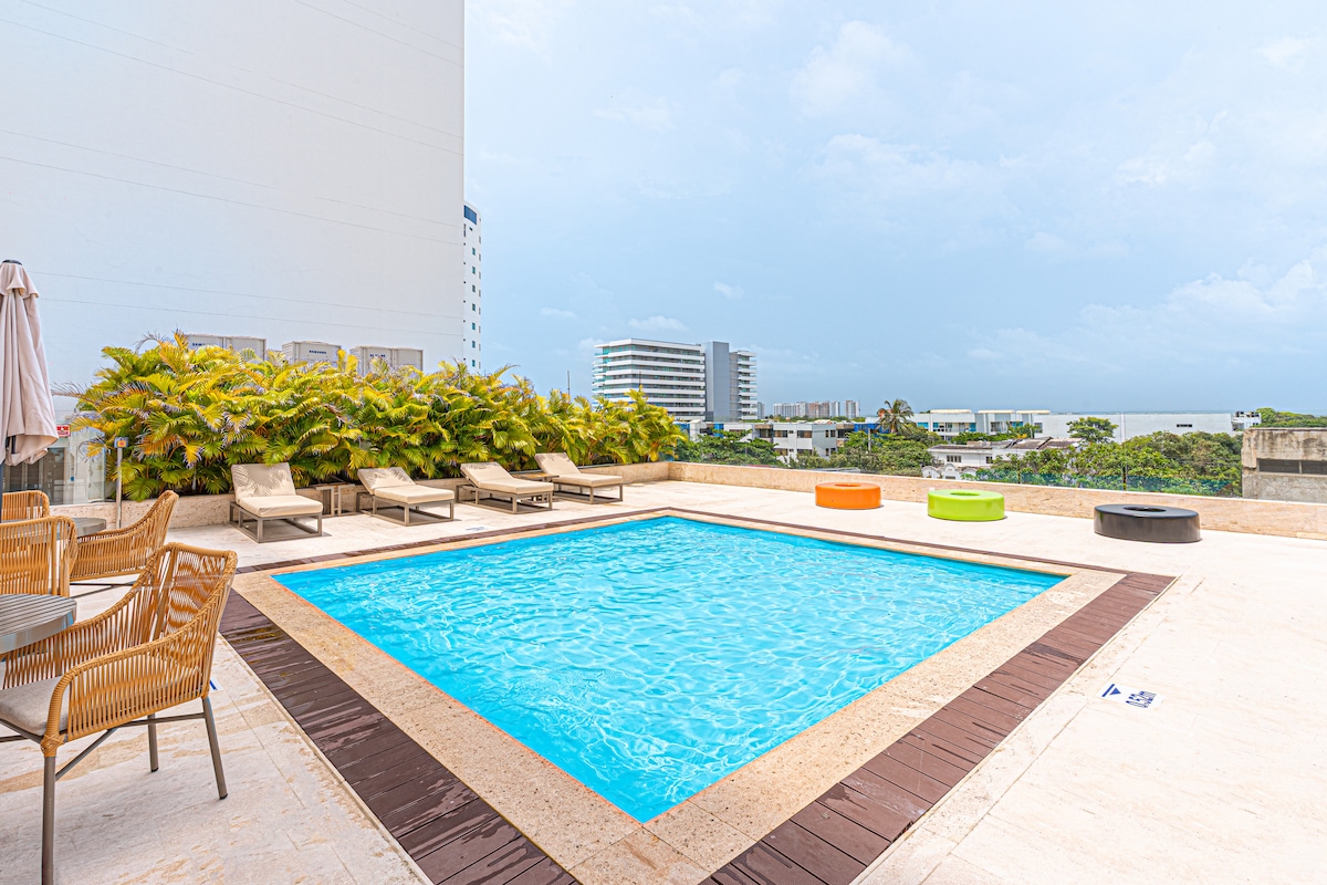 Ця квартира була розроблена для того, щоб ви могли жити безпрецедентними враженнями: ApartaSuite всього в 10 хвилинах від історичного центру!, розташована на тринадцятому поверсі в ексклюзивній будівлі на пляжі Картахена, обладнана всім необхідним для вашого перебування в цьому чудовому місті, Wi-Fi, з прекрасним видом, де можна насолодитися приємним сходом сонця, а також прогулянками парком та пляжем, торгівлею в його околицях та близькістю до аеропорту Рафаель Нуньєс всього в 5 хвилинах ходьби.