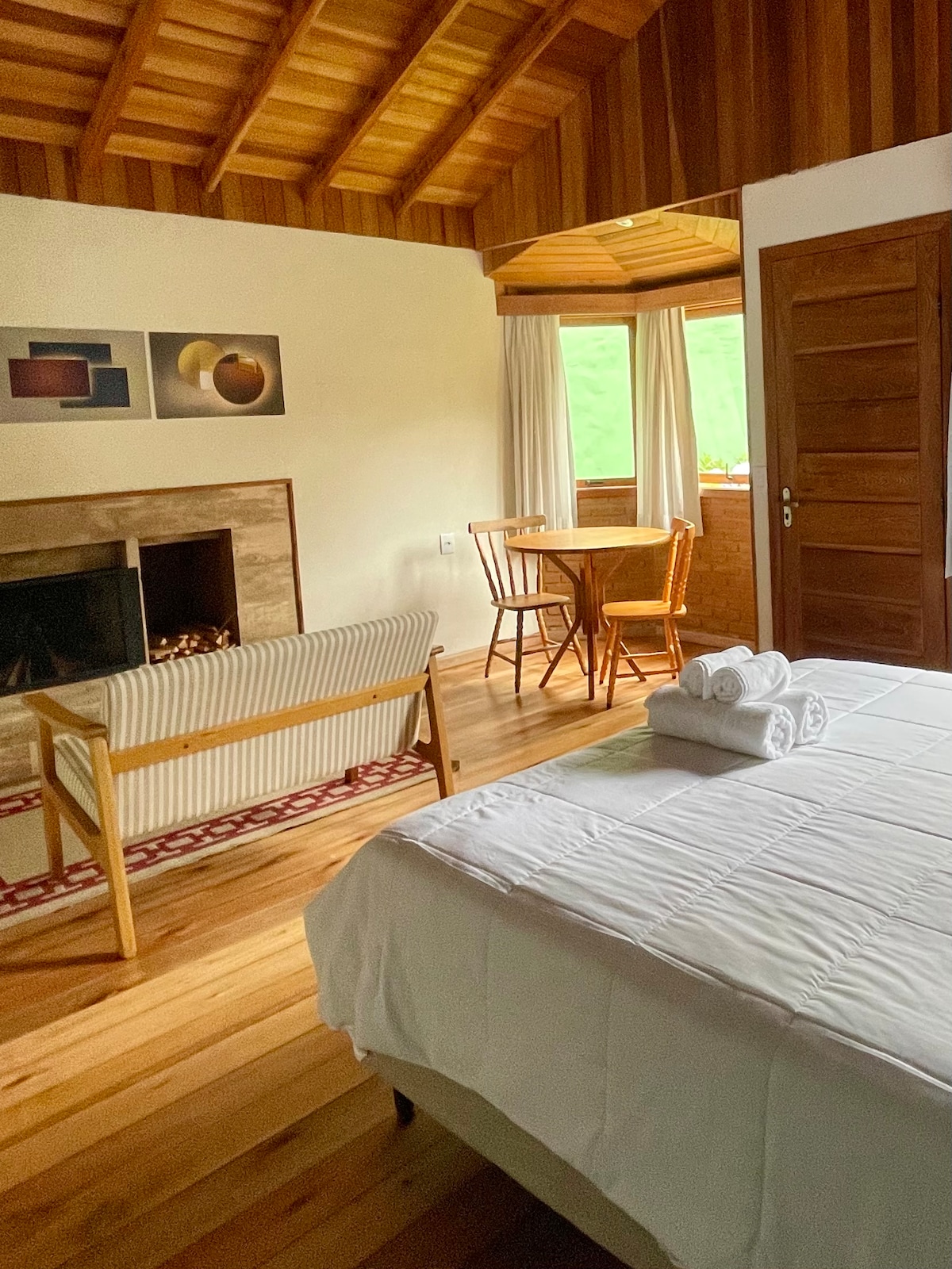 Розслабтеся в цьому тихому, стильному помешканні. Приватне шале. Двері відкриваються на Педра-Селада з унікальним і особливим видом на одну з найвідоміших листівок Вісконде-де-Мауа. Ексклюзивна тераса з гідромасажною ванною з підігрітою водою на відкритому повітрі та під зірками. Два каміни, один на терасі, а інший всередині, у кімнаті. Смарт-телевізор, подвійна коробка з двома душовими. Кухня з холодильником, духовкою, плитою та посудом. Зона спільного користування з сауною, брасейро та більярдом.