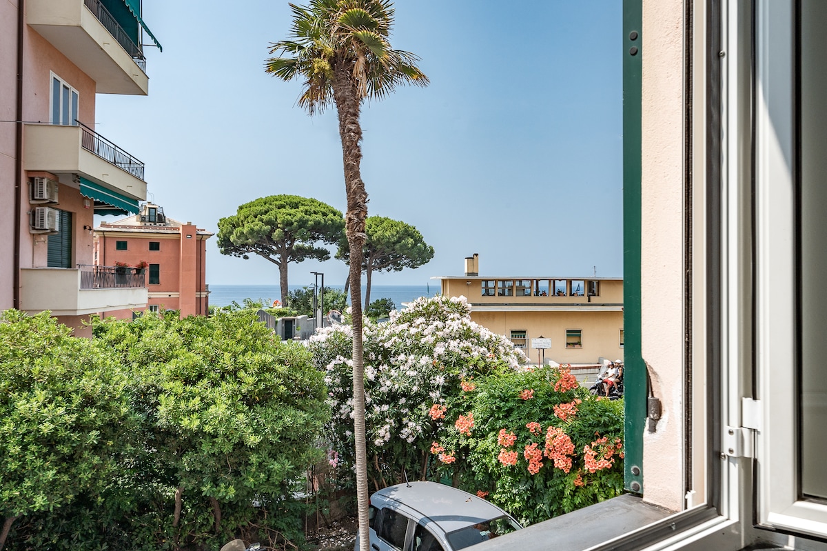 Наш будинок розташований на пагорбі П 'єве-Лігуре. Вона оточена зеленню в сімейній і спокійній обстановці. З будинку та саду відкривається прекрасний краєвид на всю райську затоку. У помешканні є прибудинкова територія для читання, їжі та барбекю. Море знаходиться в 10 хвилинах ходьби вниз; ви можете виїхати на кілька екскурсій, не виходячи з дому. Відстань від центру Генуї становить близько 30 хвилин на автомобілі. Залізничні та автобусні зупинки знаходяться в 10 хвилинах ходьби.