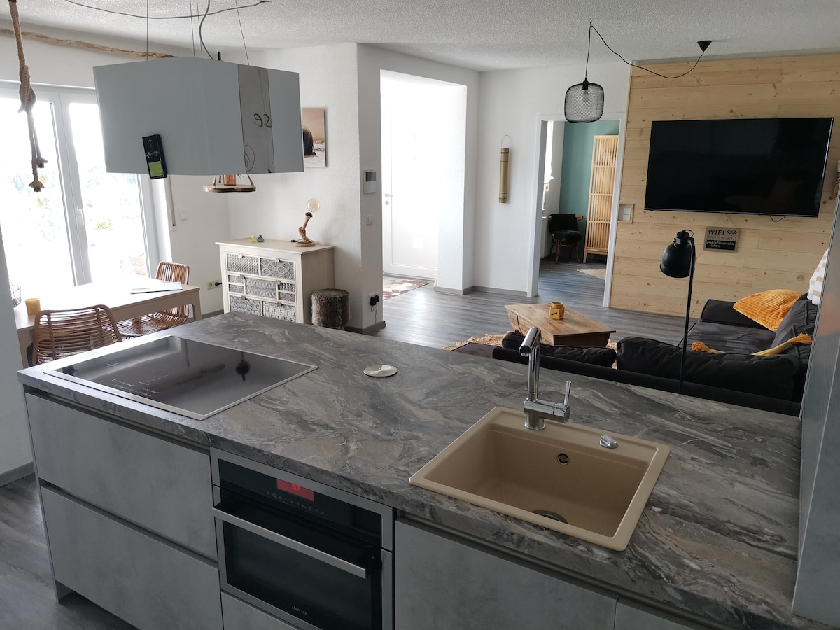 Waldlusti - це красиво розташована квартира на краю лісу Сінгенського району Уберлінген на Ріді. Квартира площею близько 87кв.м з вітальнею, кухнею, спальнею та ванною кімнатою була повністю відремонтована в 2022 році. Кімнати яскраві та сучасно оформлені і мають всі великі вікна з видом на сад. Тут є дерев 'яна сауна*, гідромасажна ванна з підігрівом *, барбекю, вогнищева яма, гамак і крита тераса, багато можливостей для відпочинку, і це в будь-який час року.(* за окрему плату)