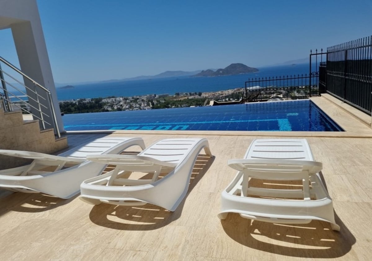 Вілла з видом на море в Бодрумі з окремим басейном із підігрівом
