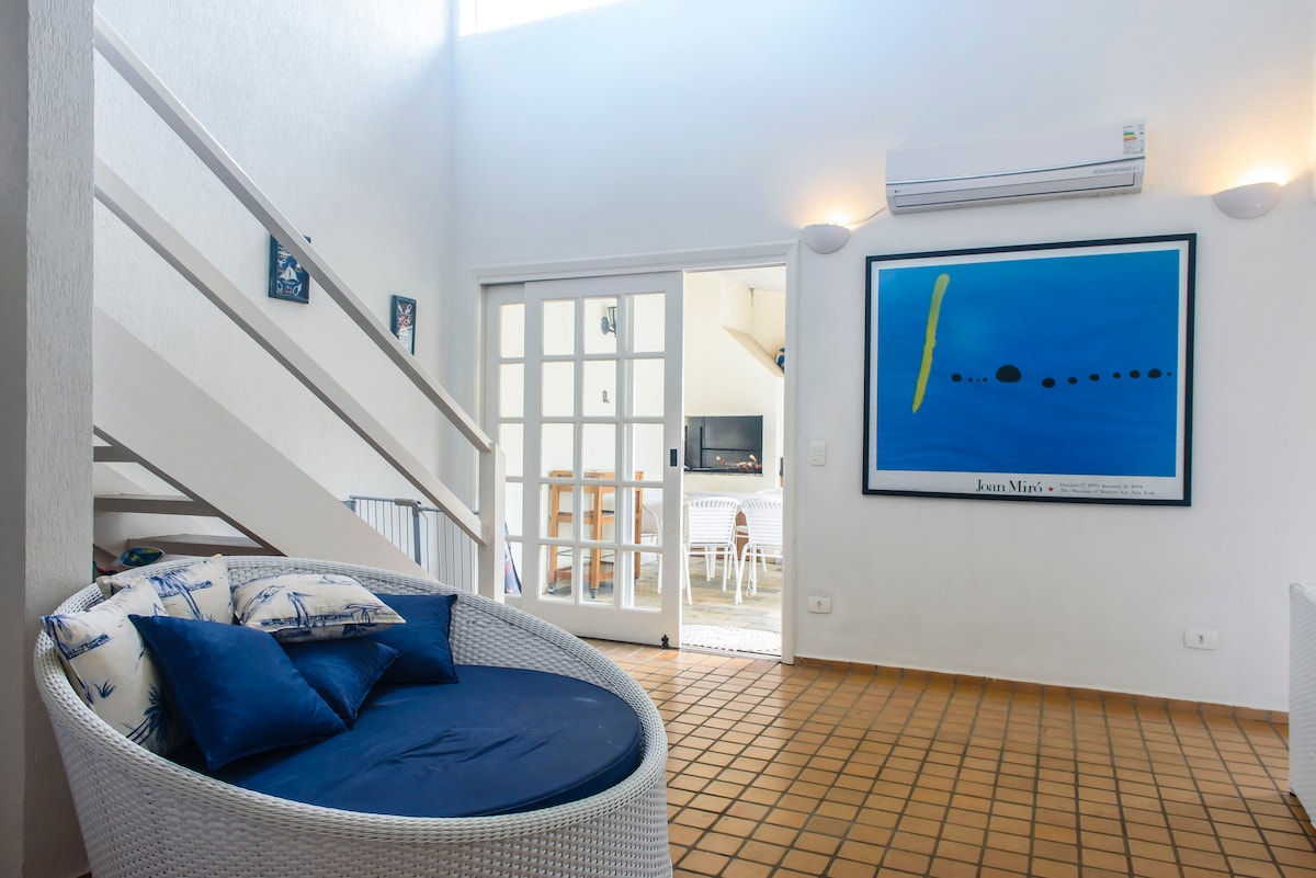 🏡 Linda Casa in camburizinho, 450 метрів від пляжного проспекту, і в 600 метрах від піску, 3 ванні кімнати, повністю обладнана кухня, відкрита зона з зоною барбекю, вид на атлантичний ліс, два простори перед будинком, максимум 6 осіб, що не може перевищувати відповідно до кондомініуму, кондиціонер у всіх кімнатах, простирадло 300 ниток. 🚲 Два велосипеди Caloi з дитячими сидіннями 🏖️ Стільці, парасольки від сонця та пляжний візок Дуже тихий, чарівний і лісовий кондомініум із басейном, сауною та ігровою кімнатою