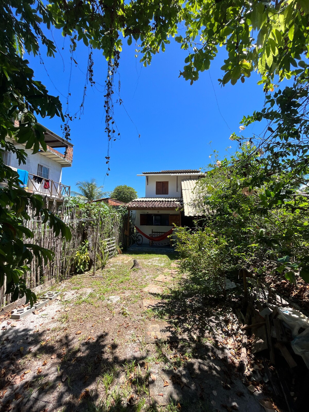 Зробіть життя простим у цьому тихому й добре розташованому помешканні на острові Бойпеба! У цьому затишному будинку є відкрита зона з повноцінною кухнею, ванною кімнатою, ліжком queen-size, кондиціонером, окремим балконом і садом. Ми розташовані на затишній вулиці в оточенні природи. Відстань пішки до: - 400 метрів до головної площі селища; - 200 метрів до точки квадроциклу, який веде до всіх пляжів. - 10 хвилин пішки від пляжу Бока-да-Барра. - Легкий доступ до пляжу Куейра.
