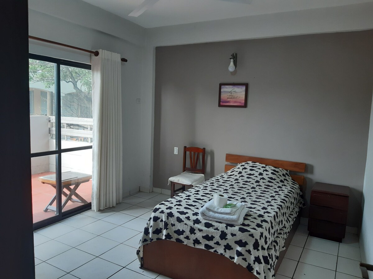 Красивий депто в центрі Таріхи Тут є 1 спальня (ліжко queen-size) та 2-місний диван-ліжко у вітальні. Розташована в 1 кварталі від головної площі і недалеко від всього: Plazuela Sucre, центрального ринку, ресторанів, аптек та транспорту. У новому та сучасному кондомініумі з необмеженим доступом за допомогою смарт-замка. 📢 Якщо ви з Болівії, ви можете використовувати віртуальні картки для бронювання. У нас немає офіційного обмінного курсу.