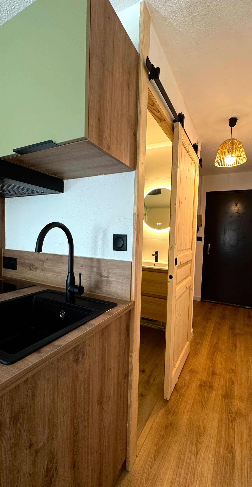 Le Flocon est un petit appartement cosy et parfaitement optimisé, idéal pour devenir votre cocon le temps d’un séjour à la montagne ! ❄️ Idéalement situé au pied des pistes ainsi qu'au départ de nombreuses randonnées, il saura séduire les amoureux de la nature. ⛷️🏔️🥾 L'appartement dispose d'un coin cabine avec un lit de 140x175, d’une salle de bain avec WC, ainsi que d’un séjour chaleureux comprenant une cuisine américaine et un canapé convertible en 160x200.