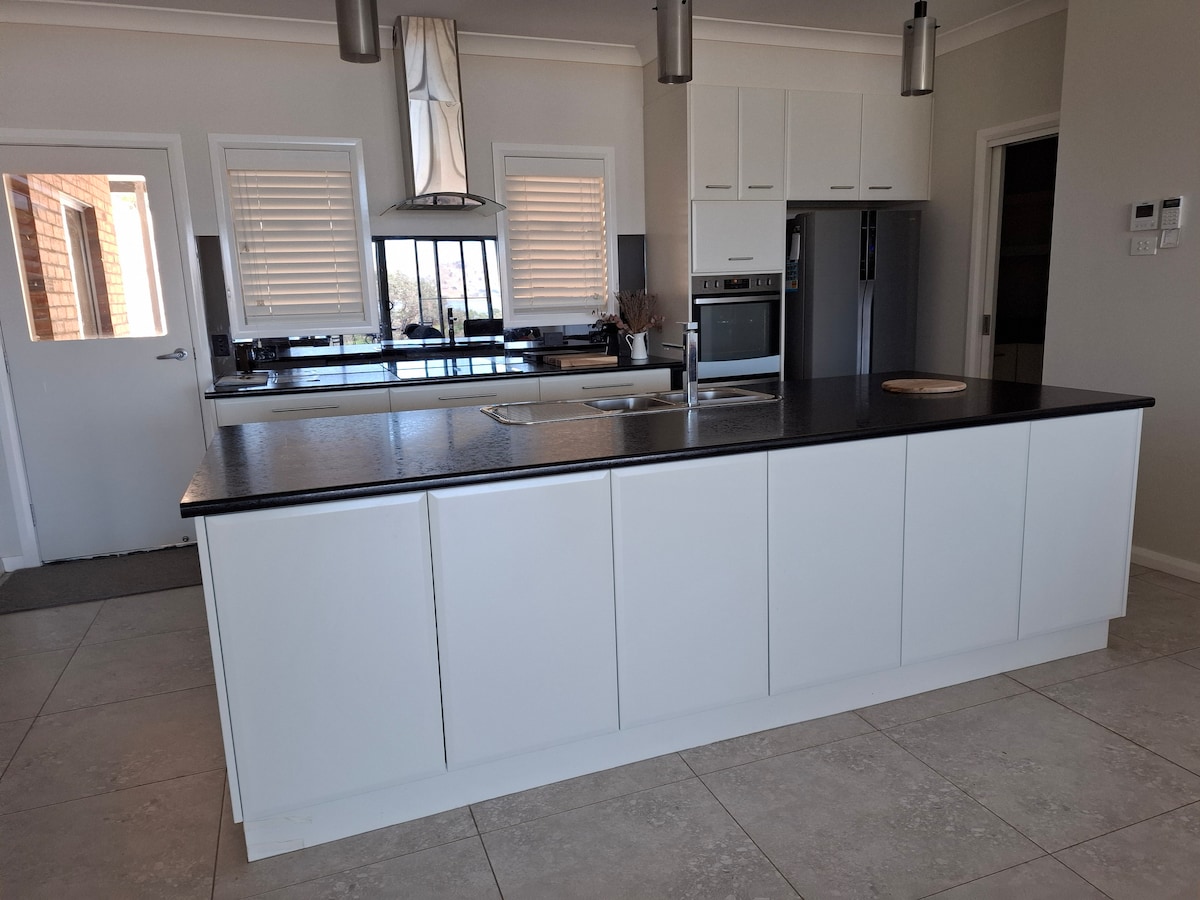 Newly Renovated Interior. Lge Main Bedroom with King Bed, a 42"TV and Workspace. A Queen Bedroom & Bunk Bedroom. Ample Robe Space. Sleeps 6. Fully Appointed, Functional Kitchen & Laundry. Super Comfy Lounge, 60" TV. Free WI FI & Netflix. Split Air Con, Fans in Bedrooms & Living. Relax on Front Porch, Entertain Undercover in the Lge Secure Backyard. 1km, CBD and Restaurant Hotel Cafe precinct. 1km to Wod. Plaza, Sumsion Gardens & Playground, and Wod. Tennis Centre. Children welcome. Dogs also :)