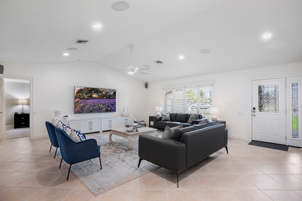Відкрийте для себе розкішний оазис з 2 спальнями та 2 ванними кімнатами в центрі Боніта-Спрінгс, штат Флорида. Він обіцяє спокійний відпочинок всього в декількох хвилинах від незайманого пляжу Боніта, ресторанів, магазинів, захоплюючих атракціонів та природних пам’яток. Стильний дизайн і багатий список зручностей залишать вас у захваті. ✔ 2 комфортабельні спальні ✔ Відкритий дизайн житлового простору ✔ Повністю обладнана кухня ✔ Задній двір (басейн, гідромасажна ванна, бар, барбекю) ✔ Будинок із басейном і зоною відпочинку ✔ Робоче місце ✔ Смарт-телевізори ✔ Wi-Fi ✔ Парковка Дізнайтеся більше нижче!