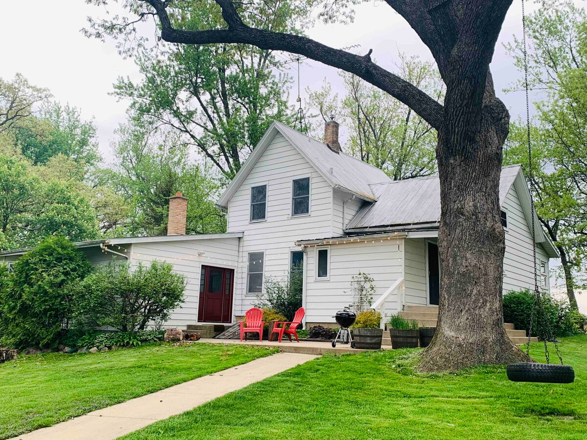Відпочиньте від міського життя та розслабтеся на фермі Boone Prairie! Цей чарівний фермерський будинок 1880-х років розташований на 40 тихих акрах з приголомшливим видом на місцеві прерії, звивистим струмком, стародавніми дубами та пишним органічним садом, де можна поїсти. Доглянута доріжка забезпечує легкий доступ до всього. Чудово підходить для тихих прогулянок на природі, споглядання зірок, вогнища та ігор у дворі. Чудовий варіант для відновлювального спокійного відпочинку або відпочинку з сім 'єю та друзями. Добре розташоване між Чикаго, Мілуокі та Рокфордом.