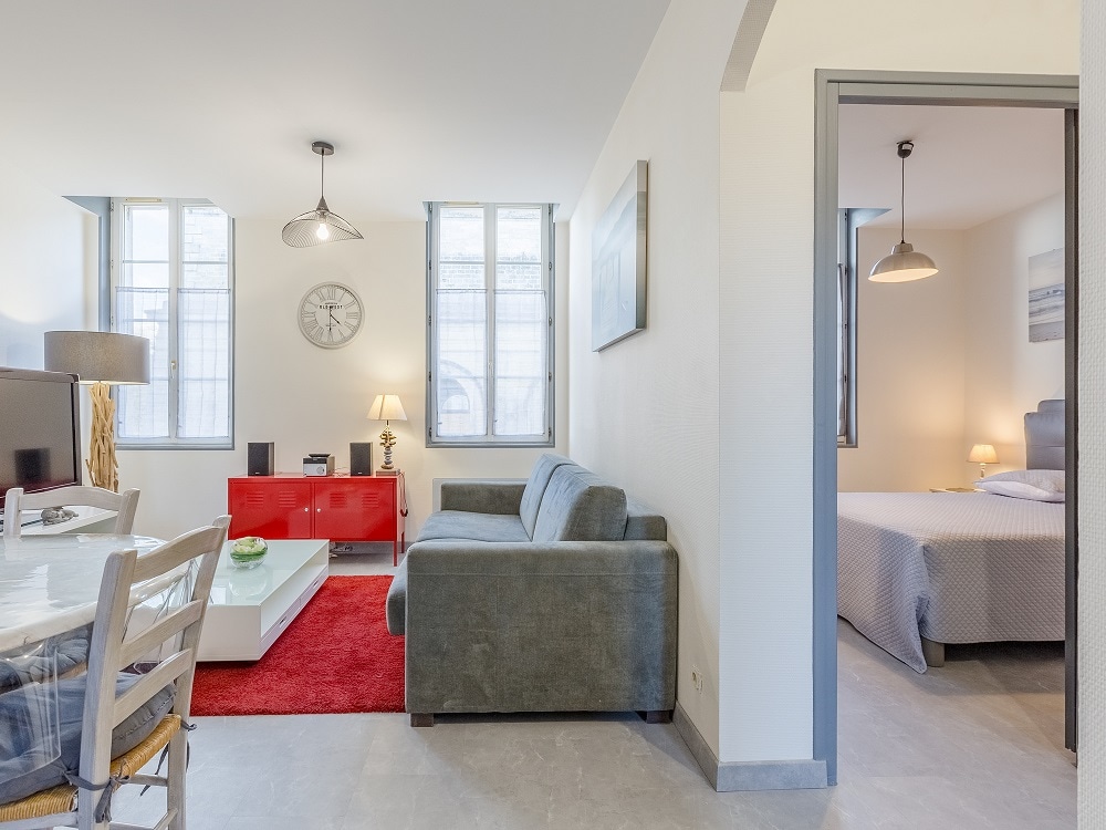 Logement traversant, lumineux, 58m², orienté sud coté salon, nord coté chambre. Il possède 6 grandes ouvertures avec une vue dégagée. Il se situe au dernier et deuxième étage. Stationnement payant dans la rue ou parkings gratuits à proximité. Le WC est séparé de la salle de bain. Le lave linge offre une fonction de séchage. Le lit mesure 160cm/200cm, oreillers et couette en duvet d'oie et de canard. Réduction à la semaine ( 7 nuits ) de 20% Réduction au mois ( 28 nuits ) de 25%