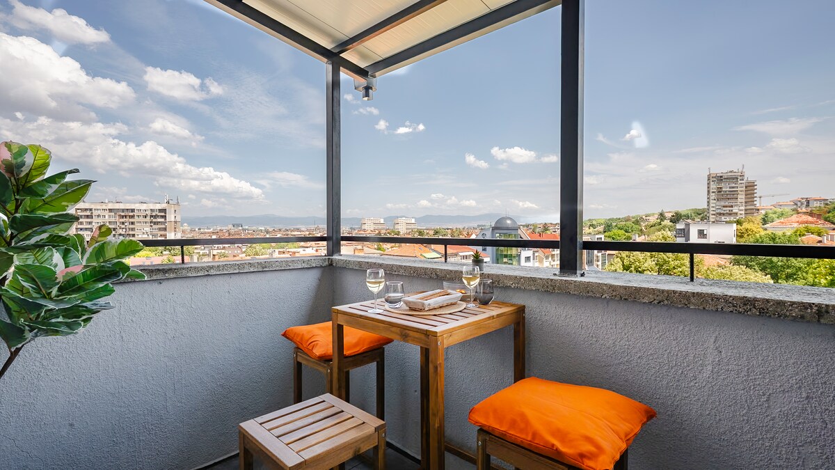 Це особливе місце розташоване неподалік від усього, що полегшує планування візиту. У вашому розпорядженні велика тераса з панорамним видом на гору Вітоша, щоб ви могли відпочити вдома. Ліфт у будівлі. Парковка в будівлі також доступна, якщо ви надіслали запит раніше. Метро знаходиться за хвилину. Нова й доглянута будівля, оточена парками, гарними ресторанами, барами та кафе в одному з розкішних районів у головному центрі.