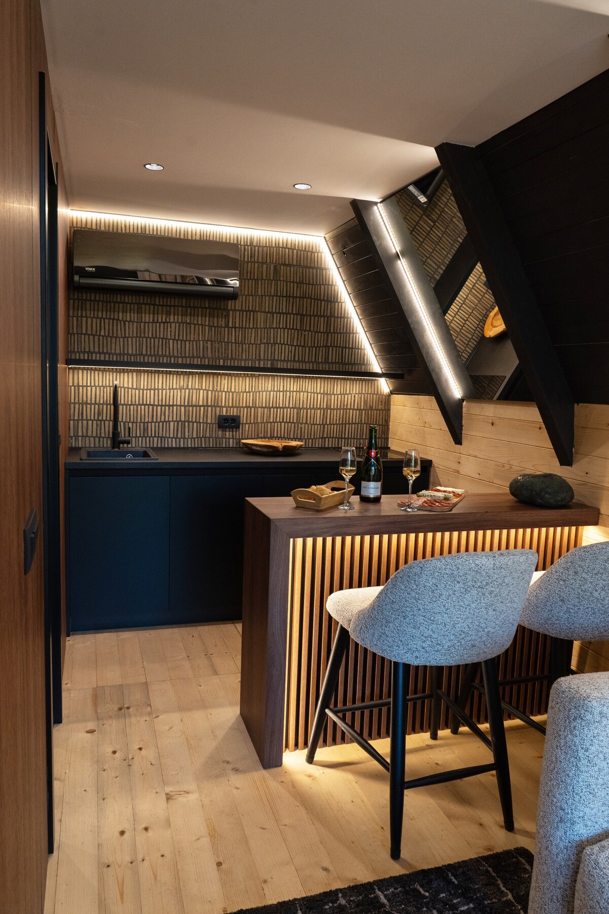 Цей чарівний, стильно оформлений котедж, розташований на незайманій природі, пропонує неймовірний вид на гору Дурмітор і озеро Ріблеє. Фасад повністю зроблений зі скла, що забезпечує незабутні панорамні враження. Приголомшливе освітлення покращує його чудовий вигляд. На верхньому поверсі галерея має затишне французьке ліжко, ідеально розташоване, щоб прокинутися з захоплюючим видом на гору. Цей заміський будиночок - ідеальний відпочинок для повного насолоди природною красою та спокоєм.