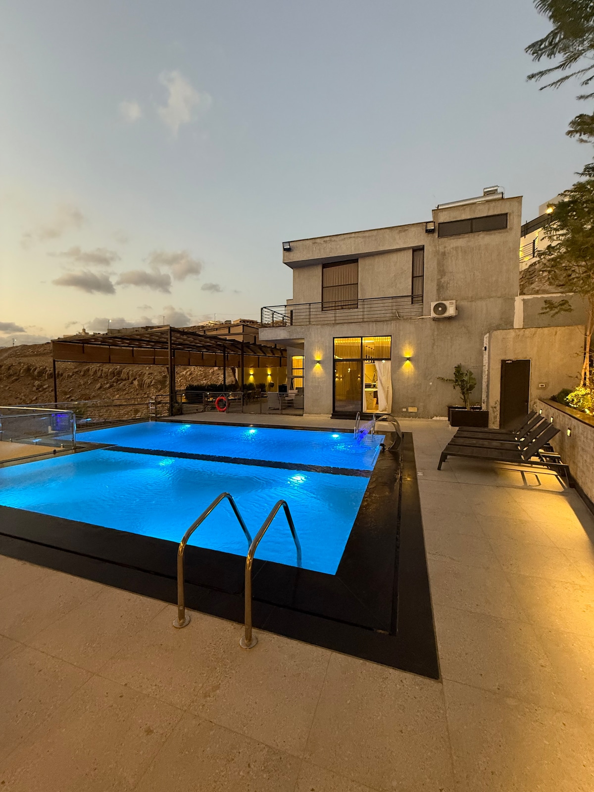 A very nice Holiday House with best view in Jordan , usually People take it for Day ( 20 Person ) and for sleeping it can take 3 persons , it have a private pool and playing area .
